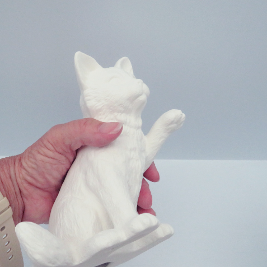 Handmade Ready to Paint Ceramic Cat Figurine, Unpainted Ceramic Cat Statue, Ceramics to Paint, Paintable Ceramics, Cat Decor, Cat Lover Gift, Kitty with Paw Up