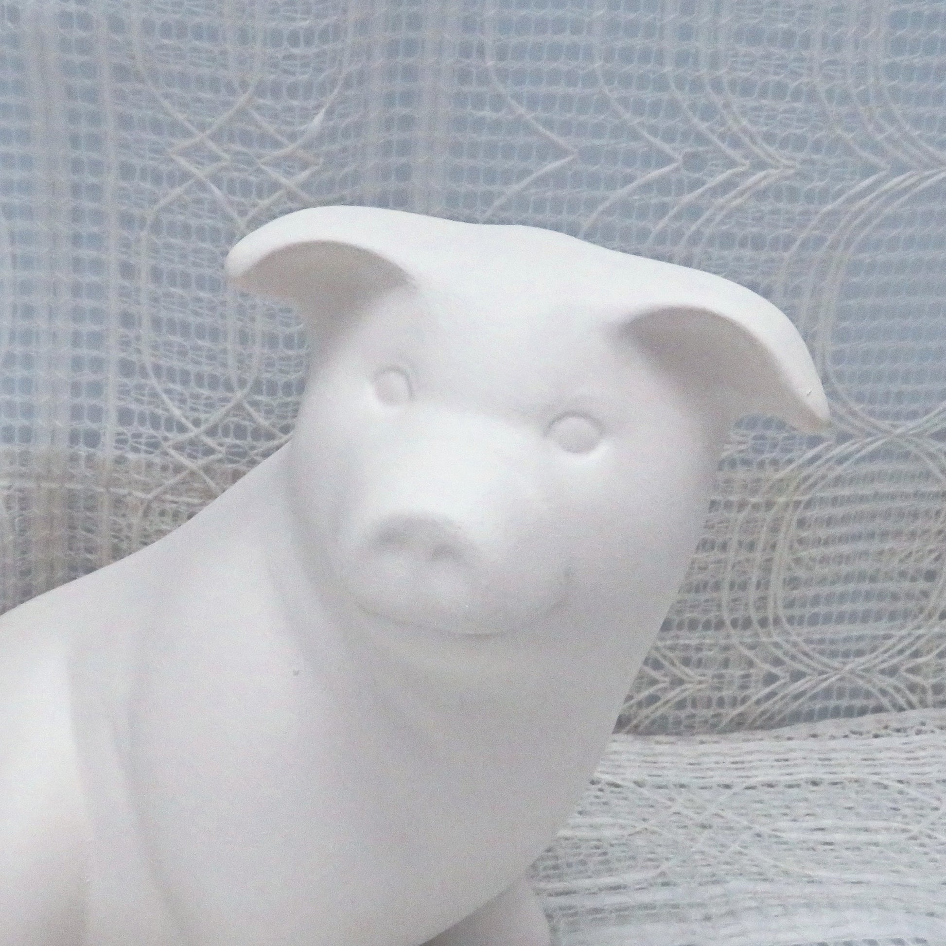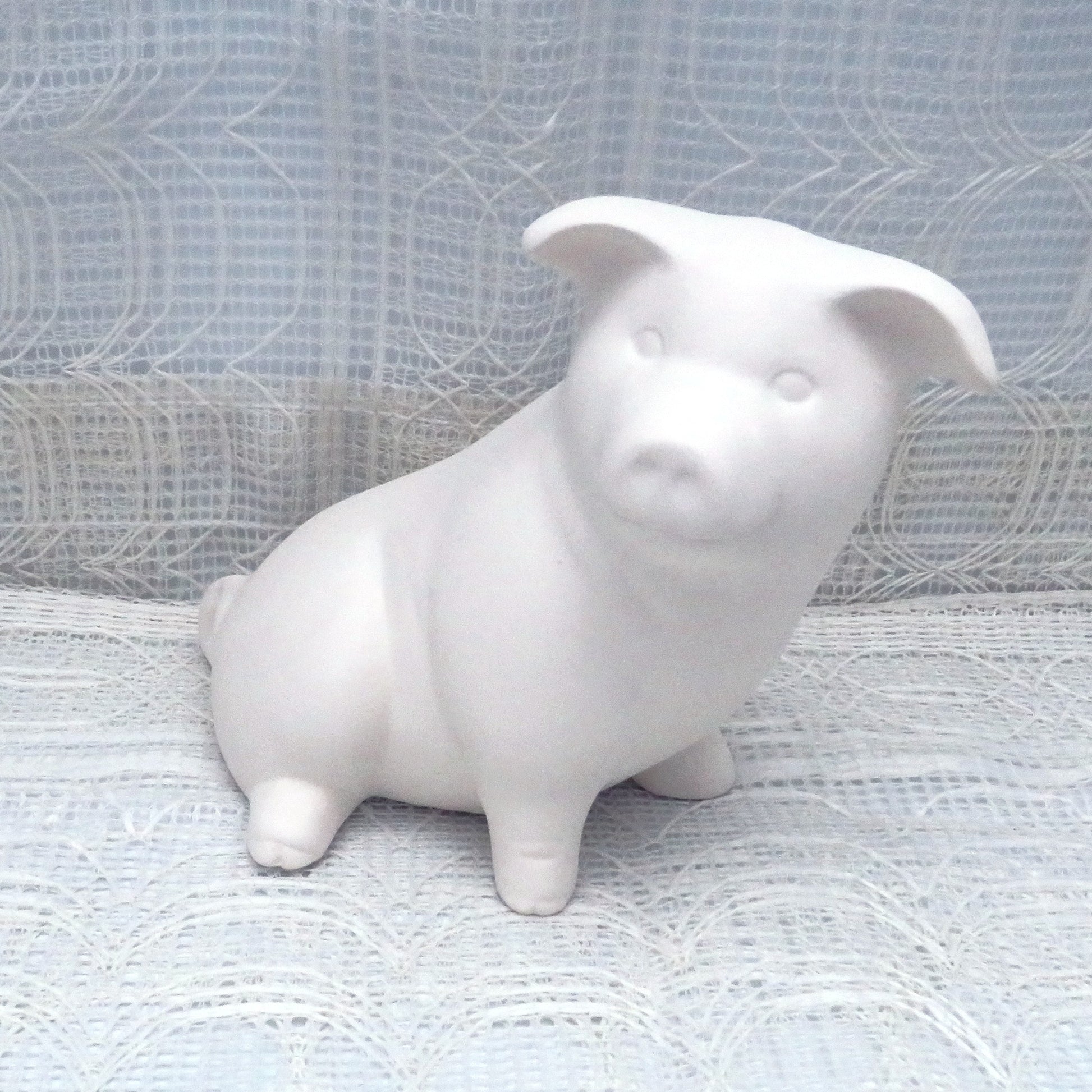 Handmade Ready to Paint Ceramic Pig Figurine, Sitting Pig Statue, Unpainted Ceramic Bisqueware, Paintable Ceramics, Ceramics to Paint