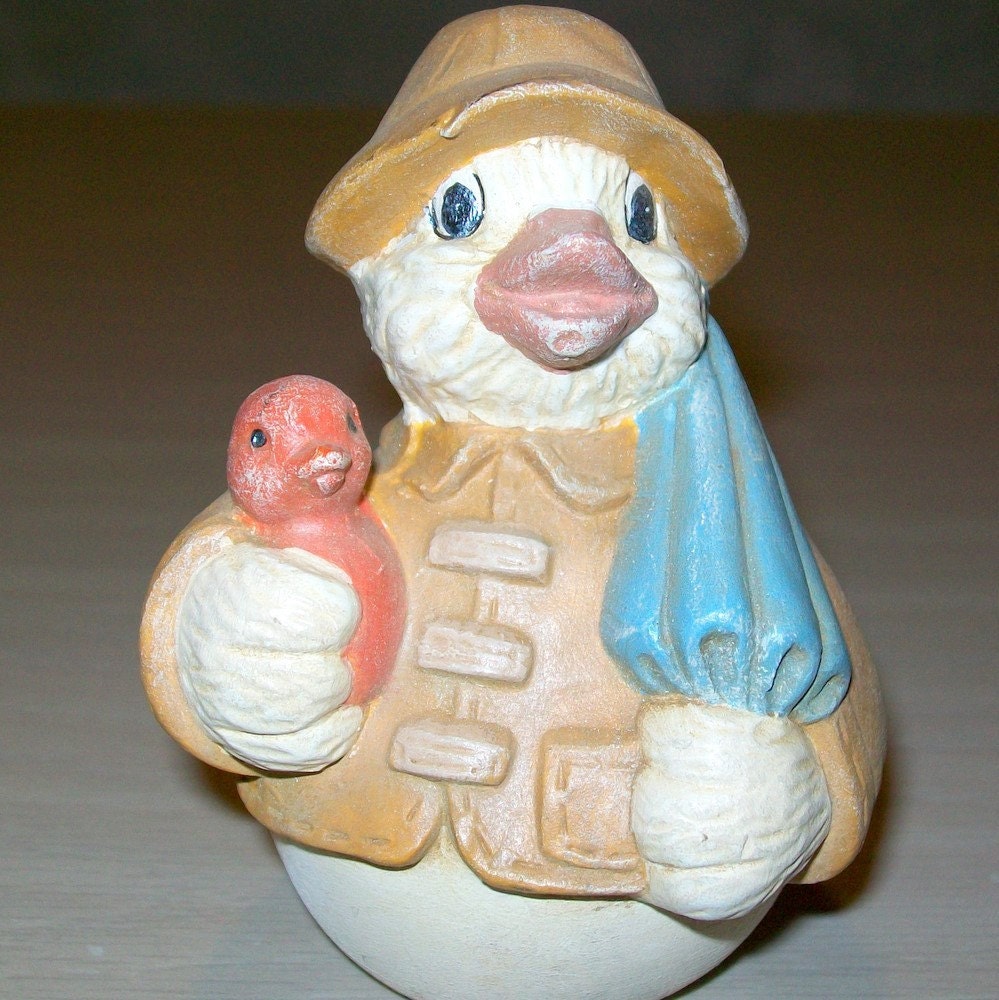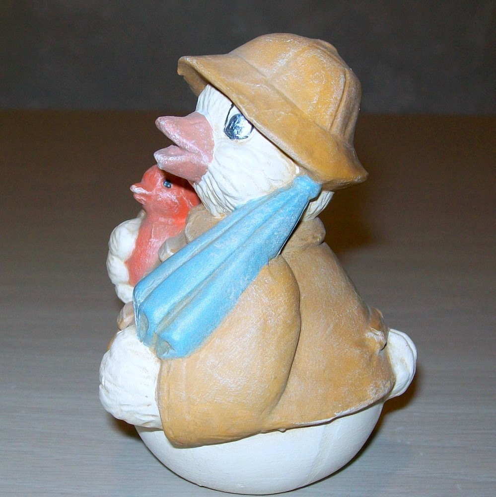 Duck Wearing Rain Coat / Handmade Ceramic Duck Figurine