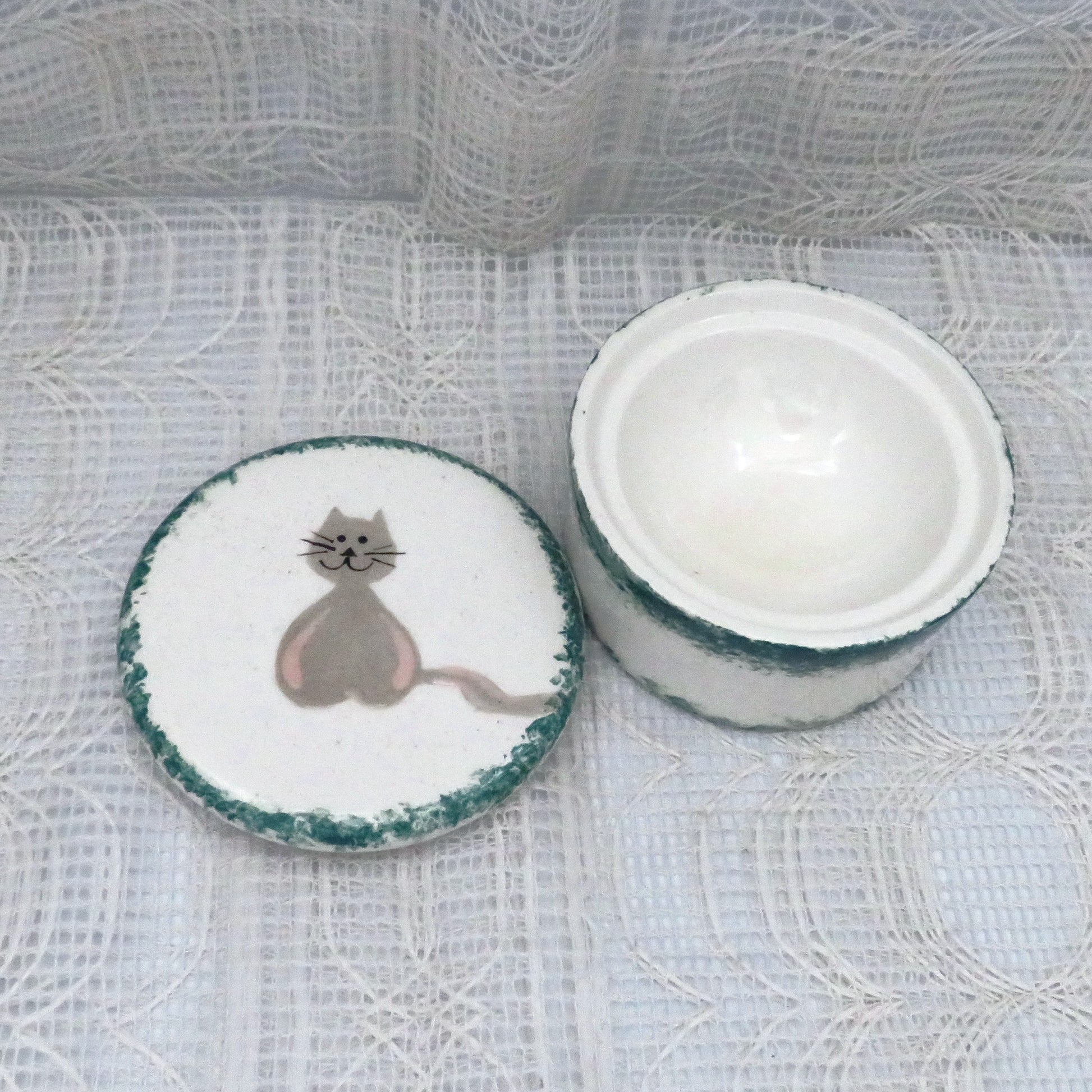 This glazed trinket dish is perfect for keeping jewelry in, or to use as a prayer box. It would be a perfect gift for a cat lover.