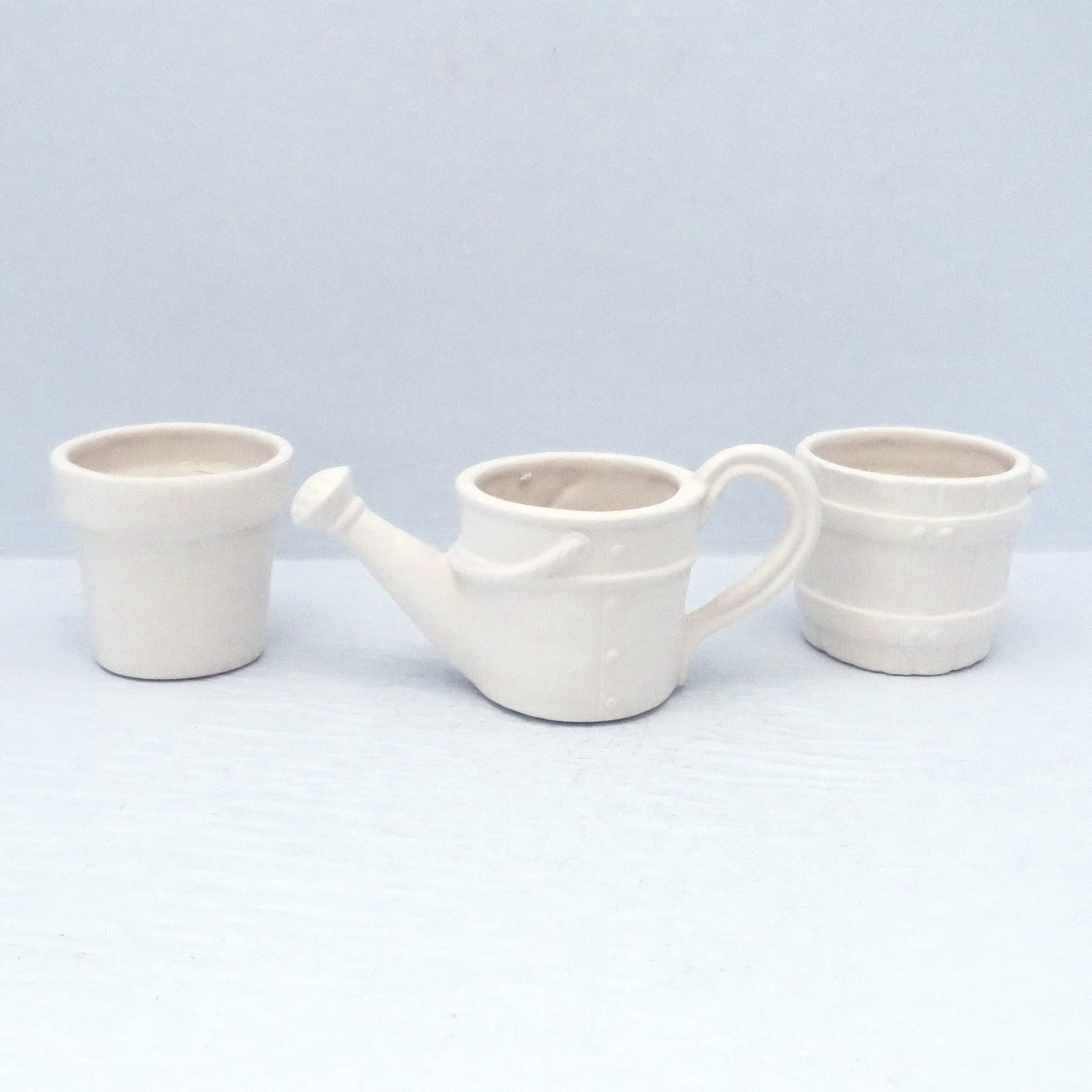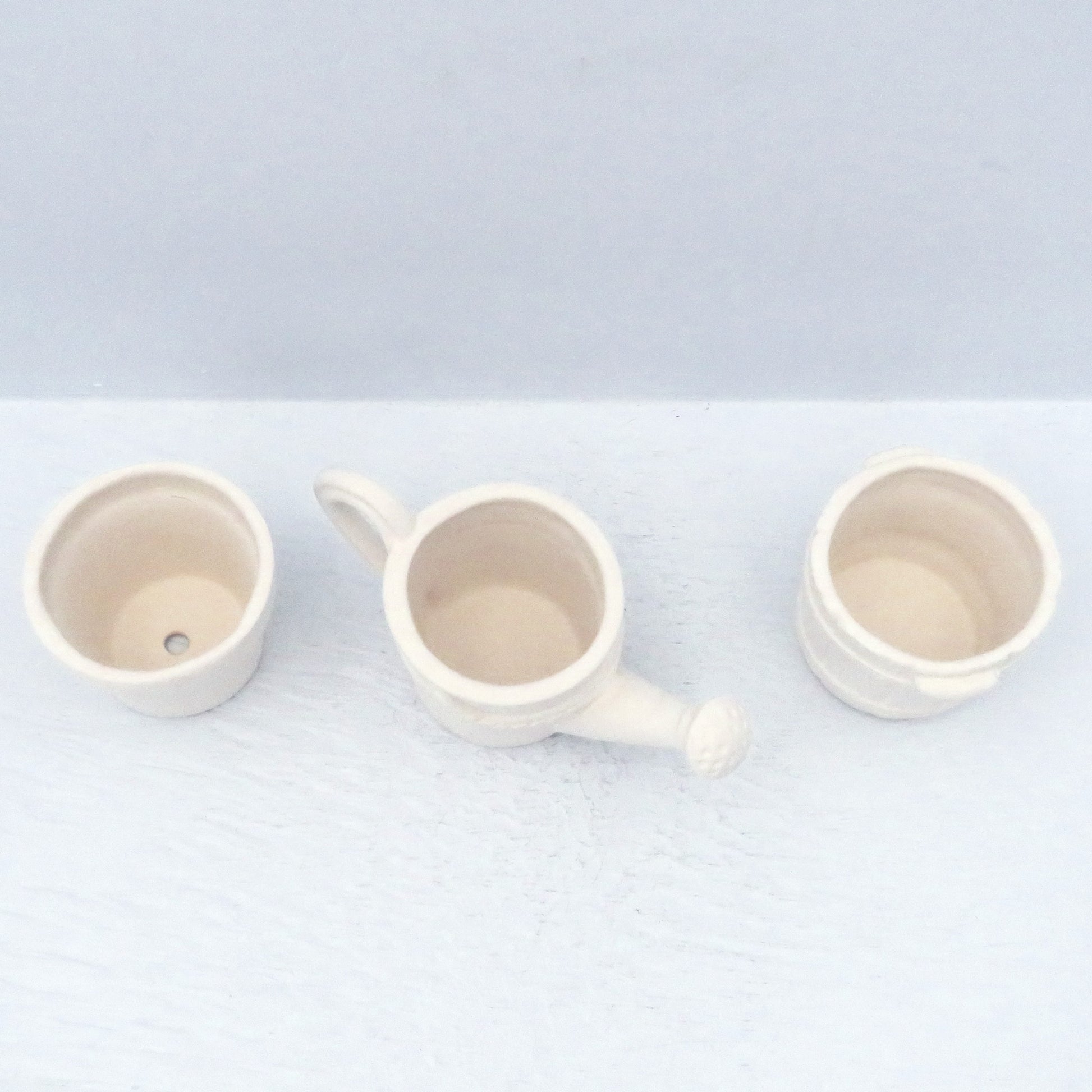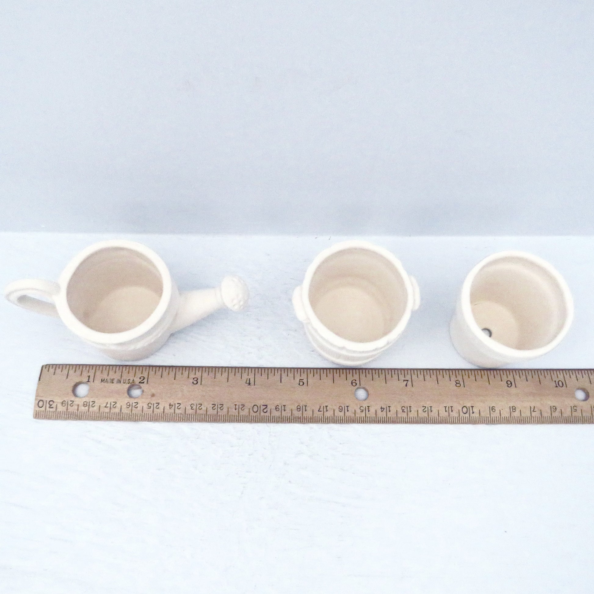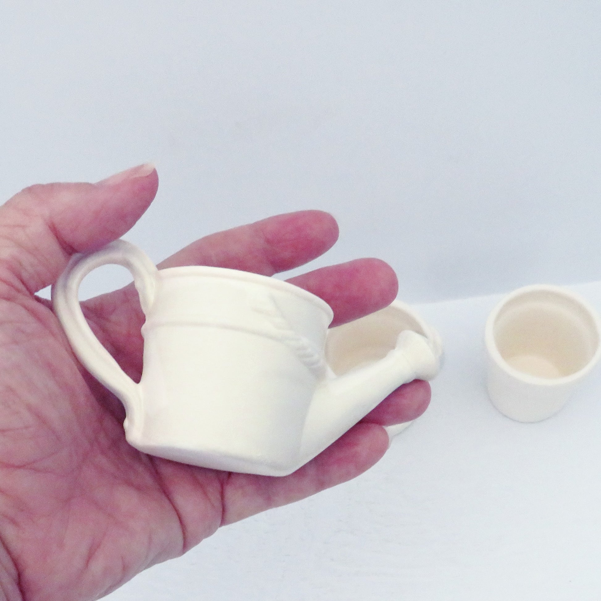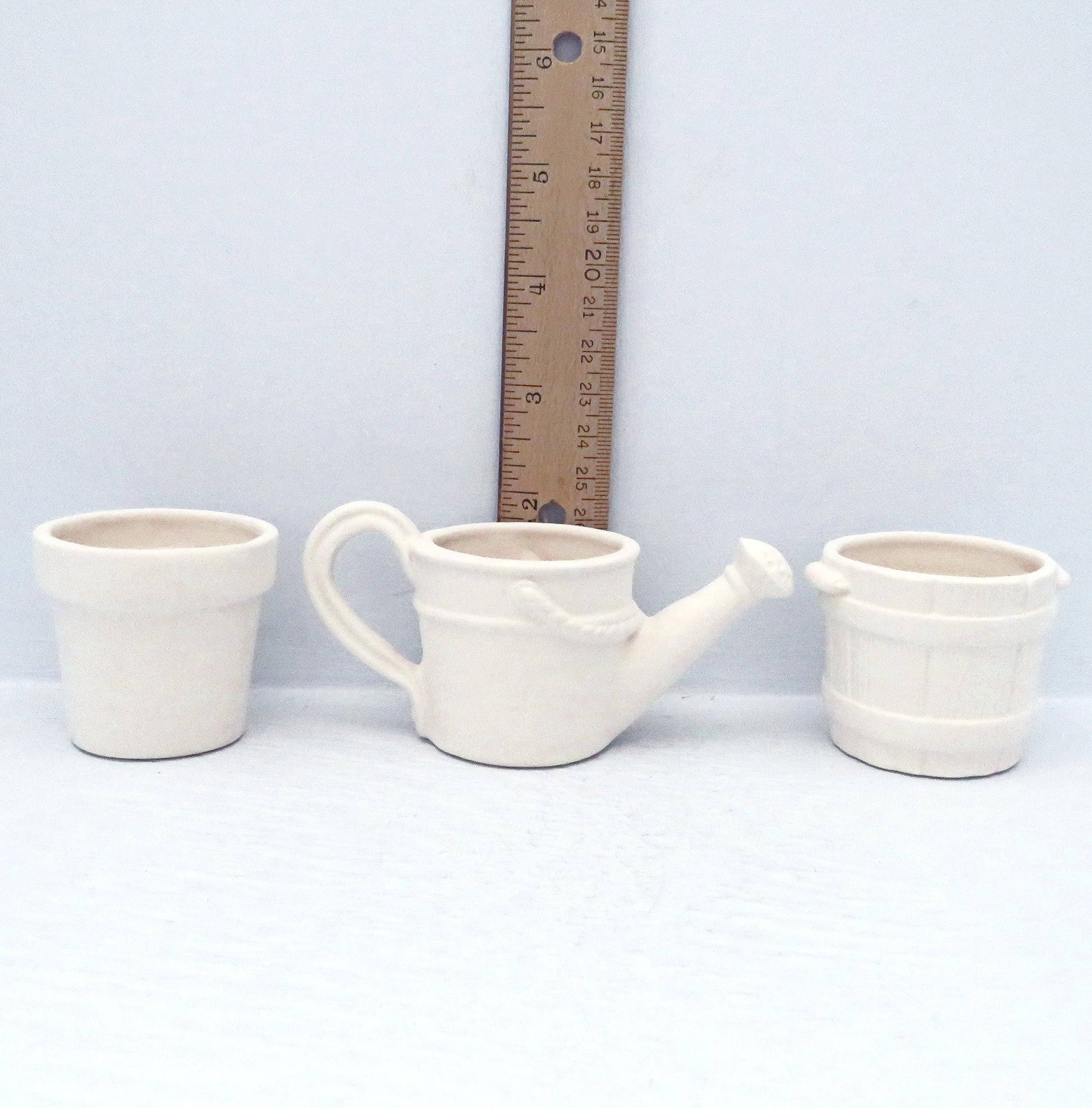If you love garden decor, this set of 3 ceramic garden figurines is perfect for you. This bucket, pot, and watering can were slip cast and fired in my studio to cone 04. They are ready to paint of to glaze and be refired to cone 06 if you have access to a kiln. This set would be adorable in an inside or an outside garden spot