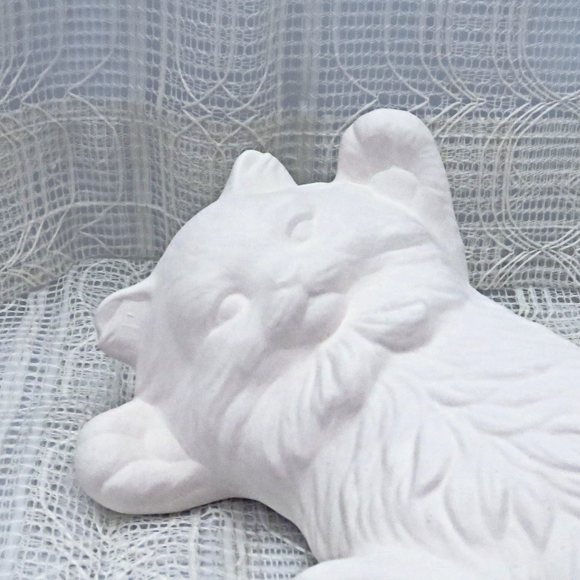 This paintable ceramic kitten was slip cast in my studio and fired to Cone .04. She is ready to paint with acrylic paints or to be glazed, which ever you prefer.