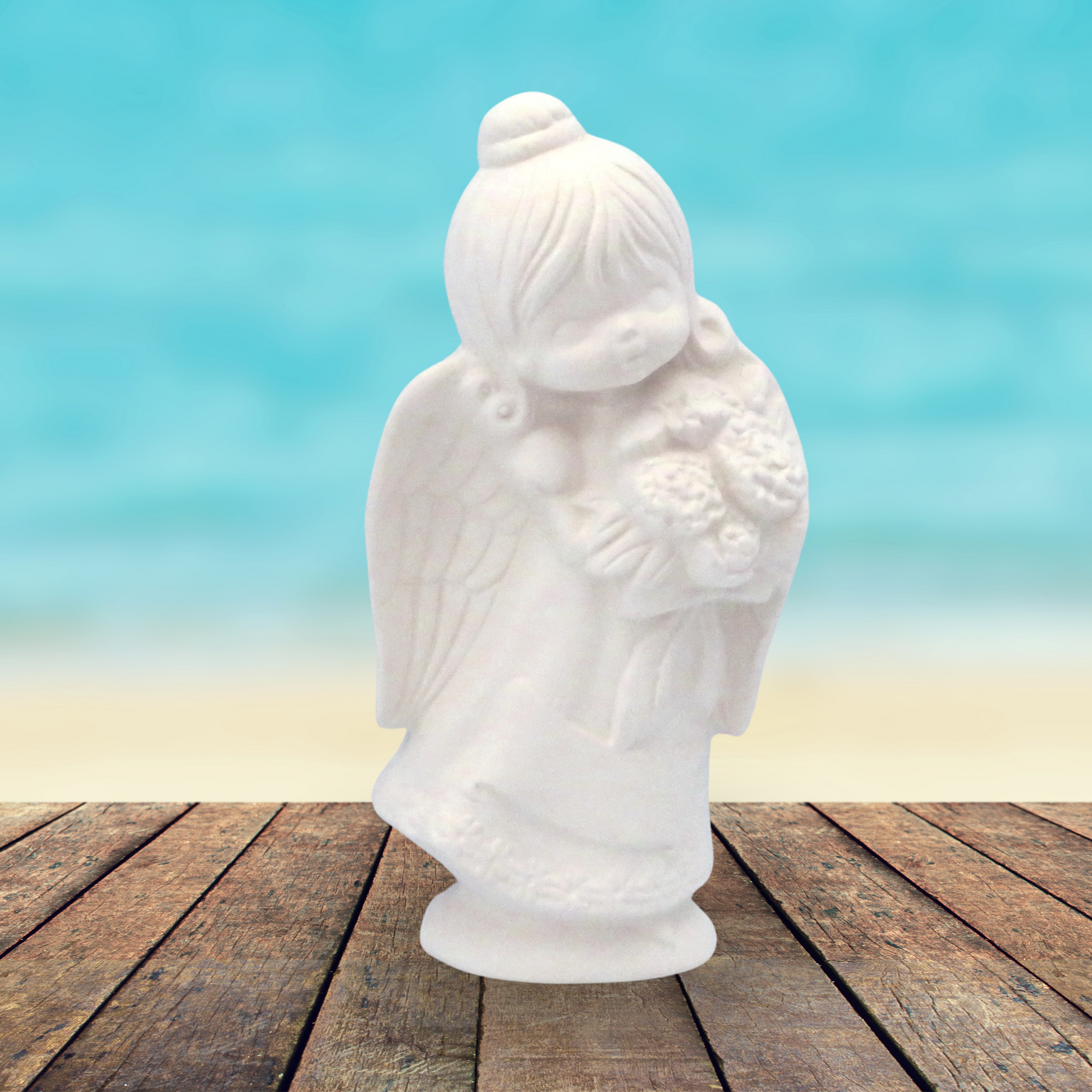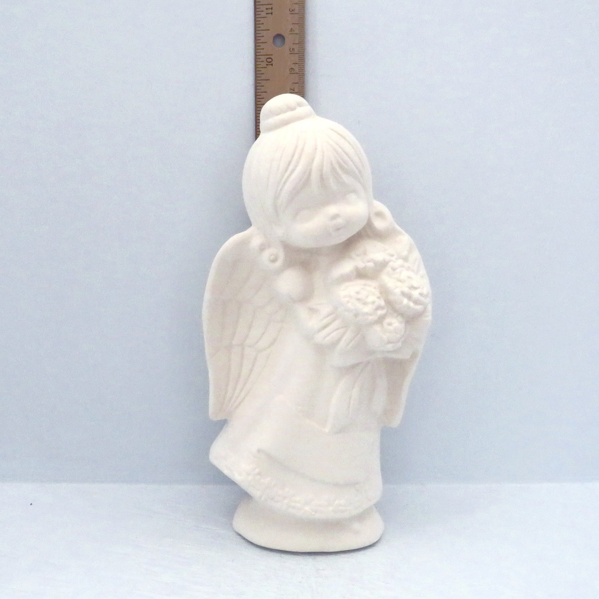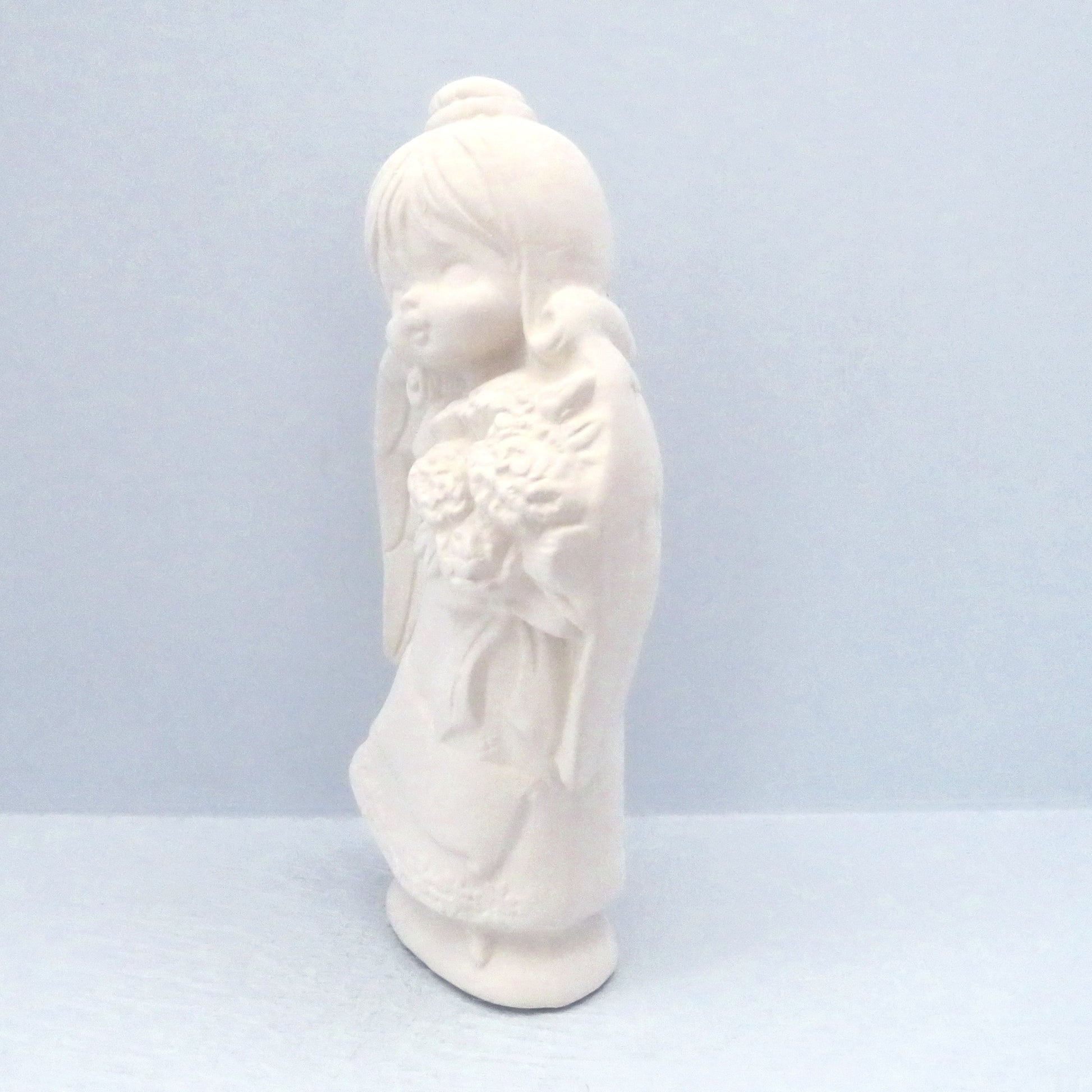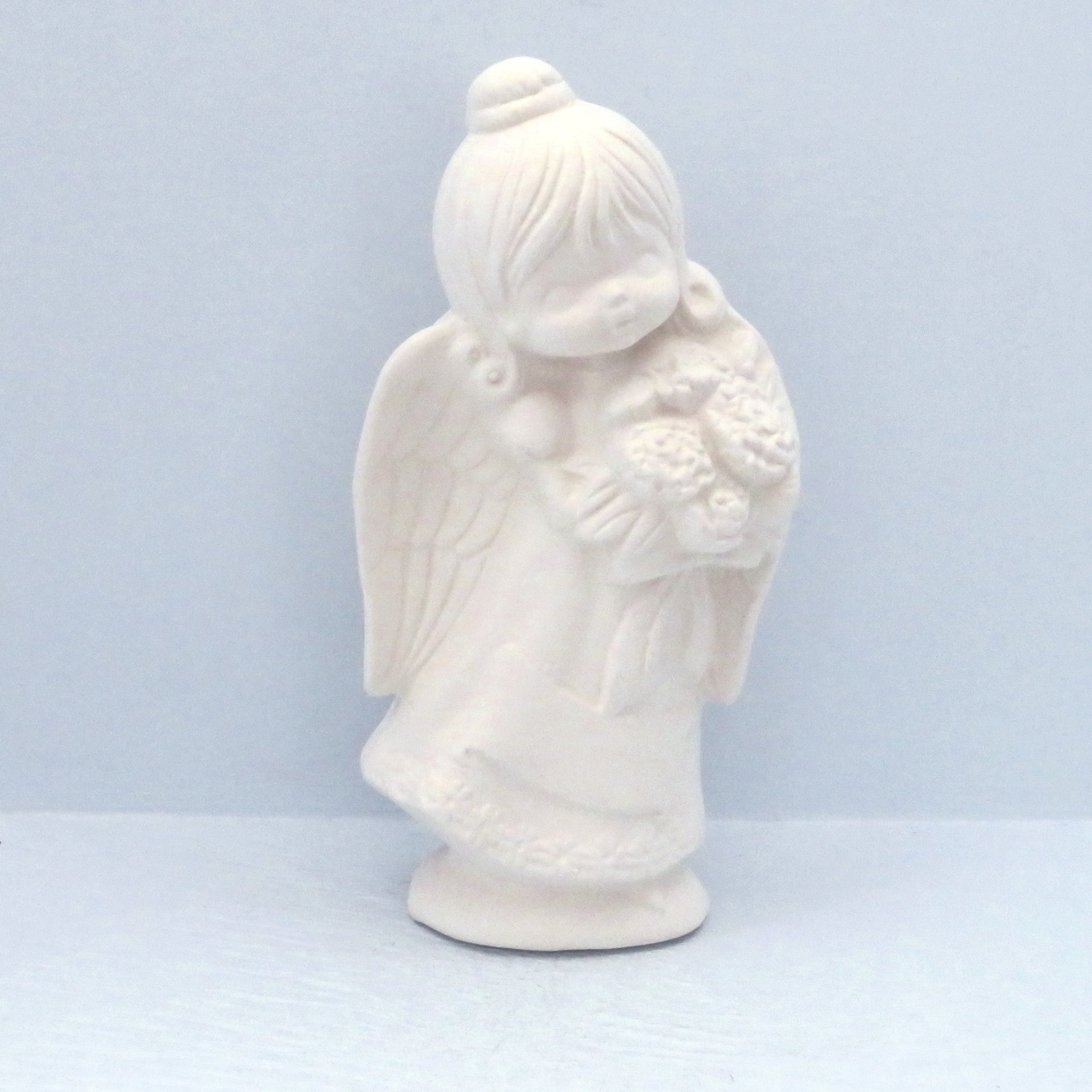 Handmade Ready to Paint Ceramic Angel Figurine Holding Flowers