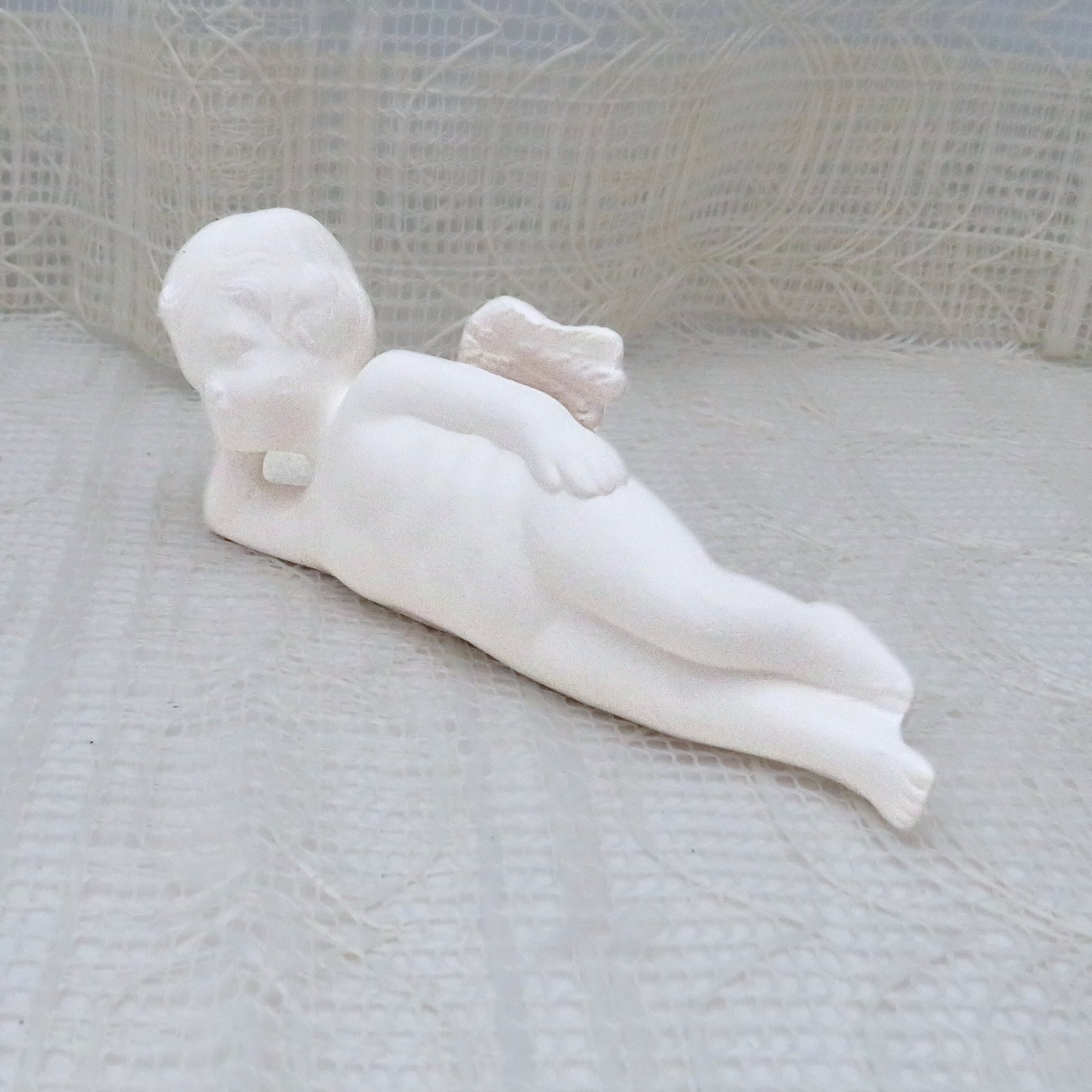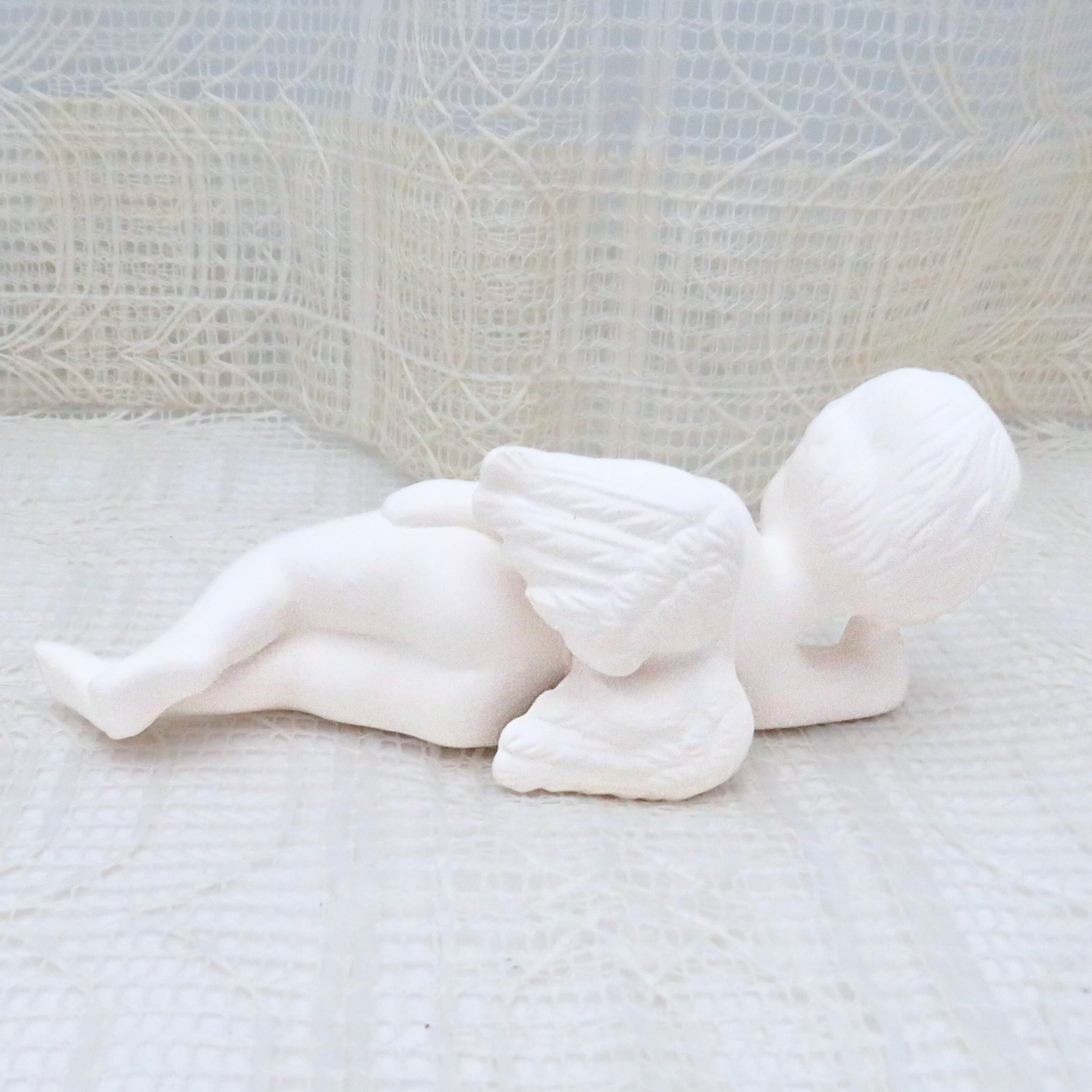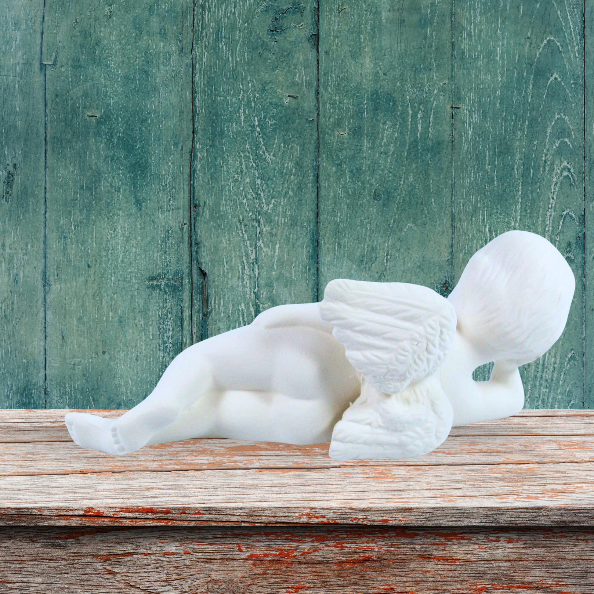 Handmade Ready to Paint Ceramic Cherub Angel Figurine Lying On His Side, Angel Decor, Angel Gift, Paintable Ceramic Cherub Statue