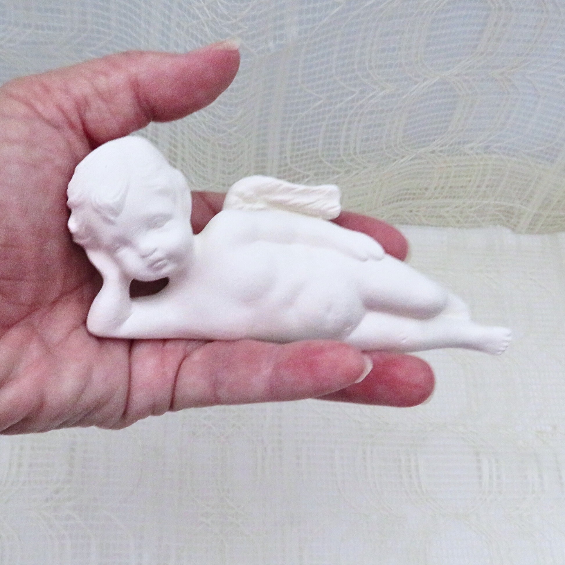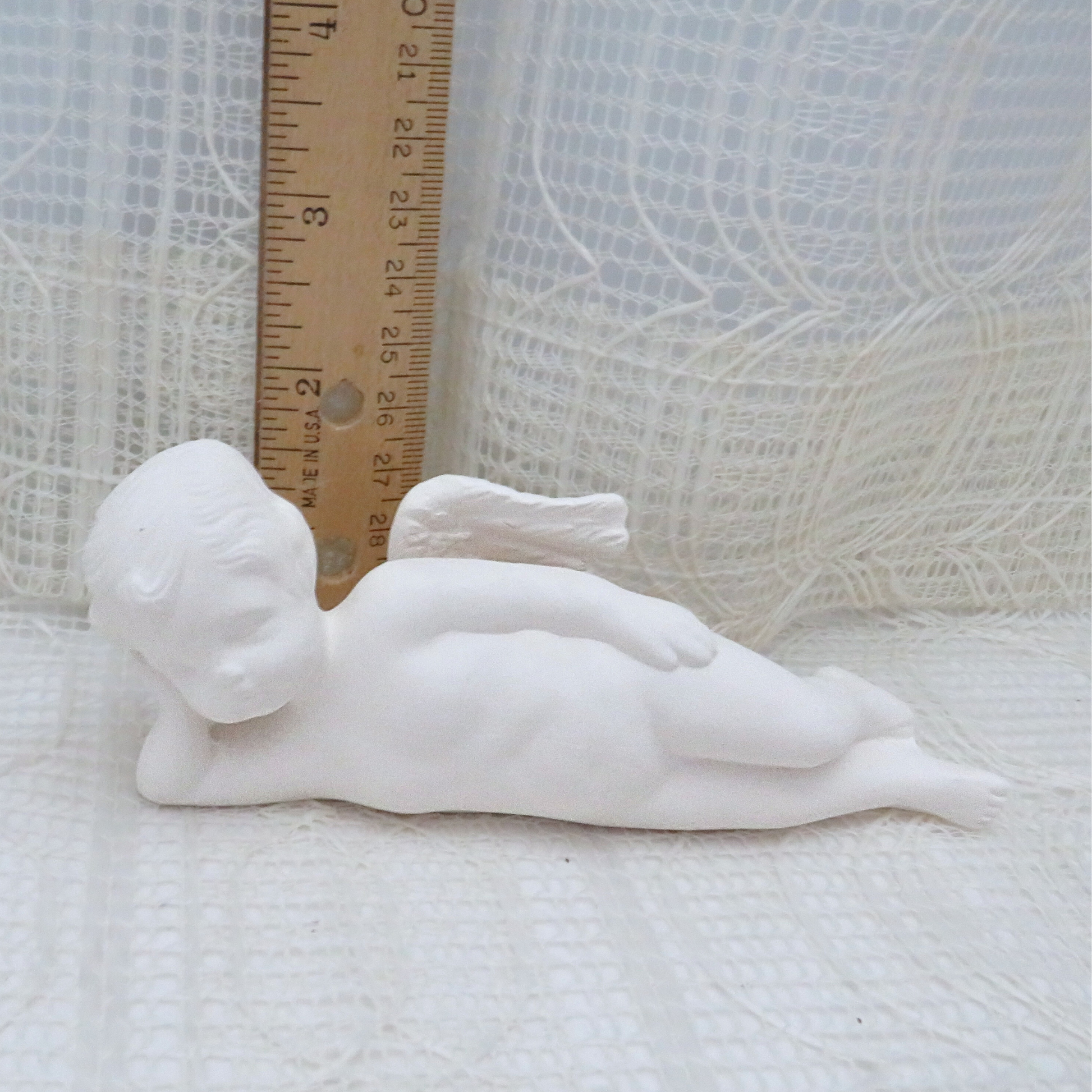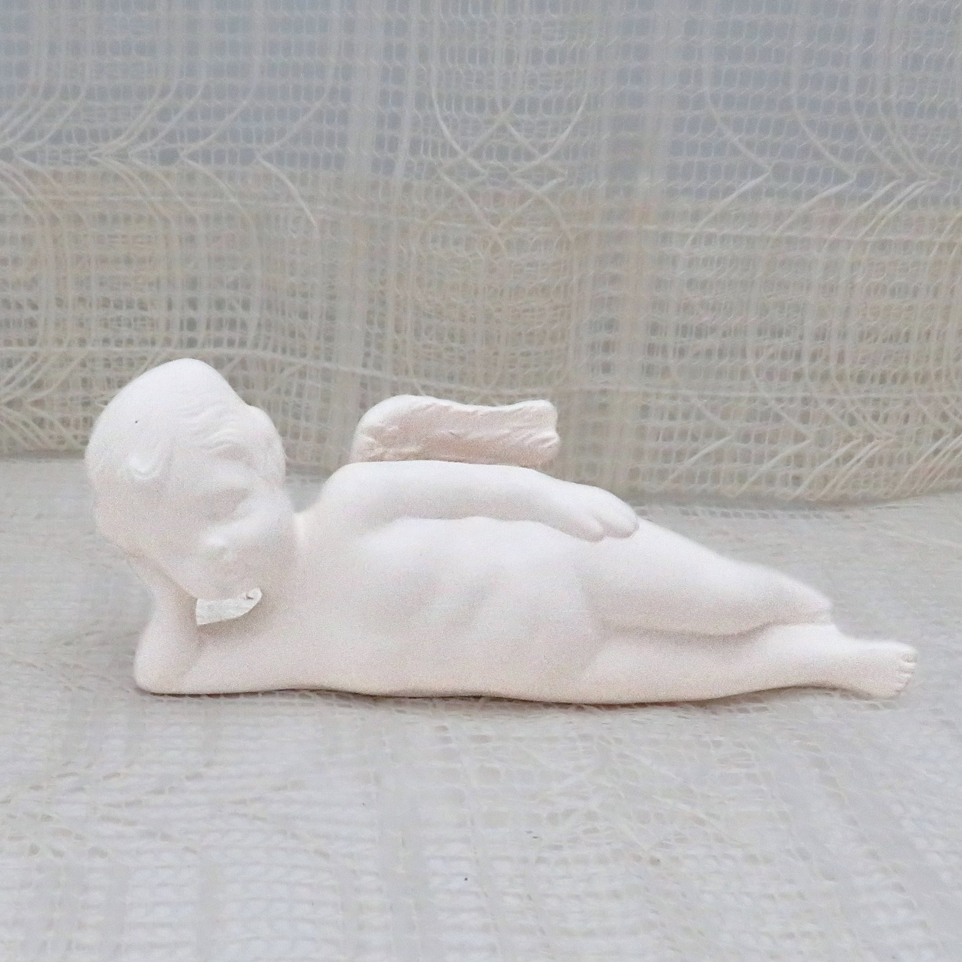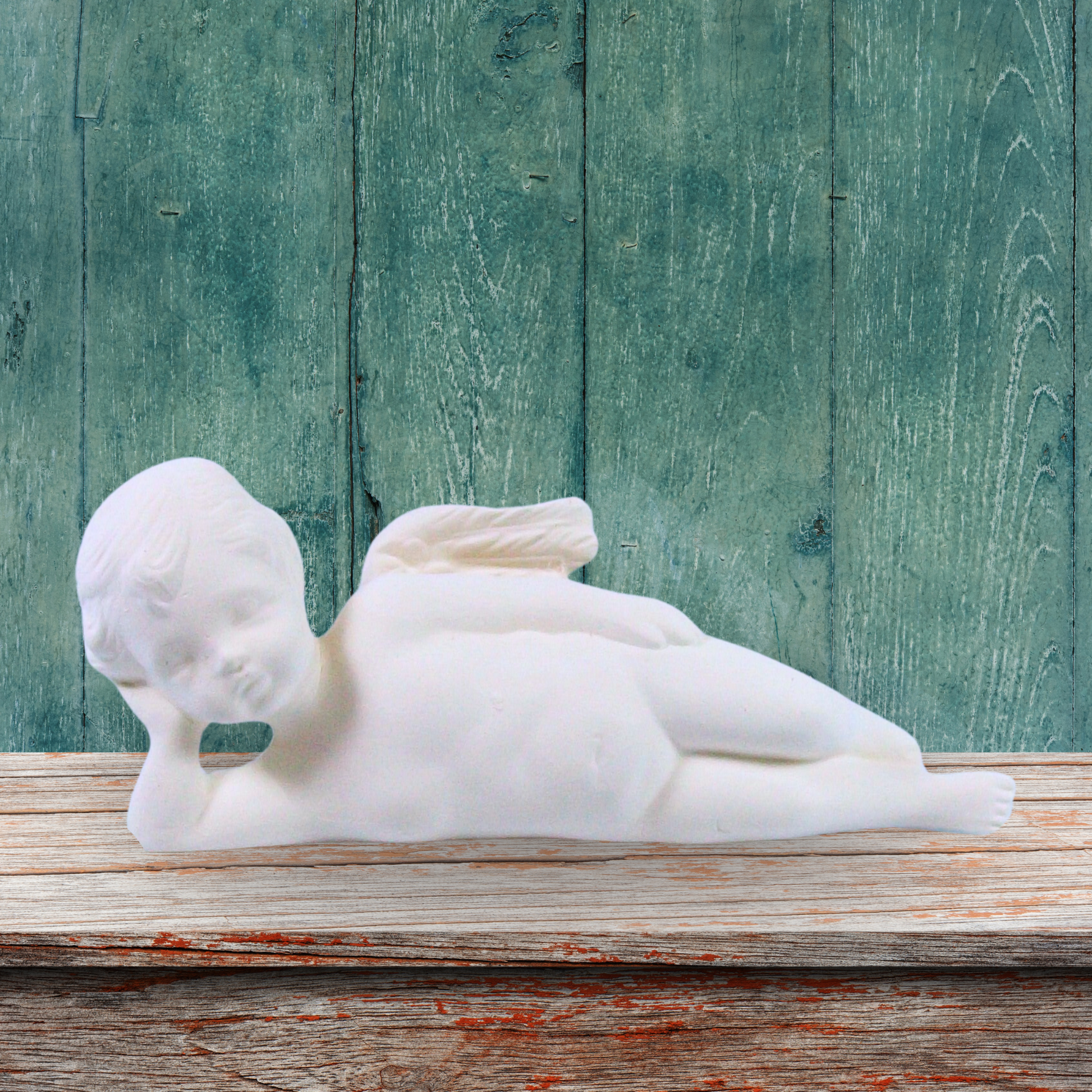 Handmade Ready to Paint Ceramic Cherub Angel Figurine Lying On His Side, Angel Decor, Angel Gift, Paintable Ceramic Cherub Statue
