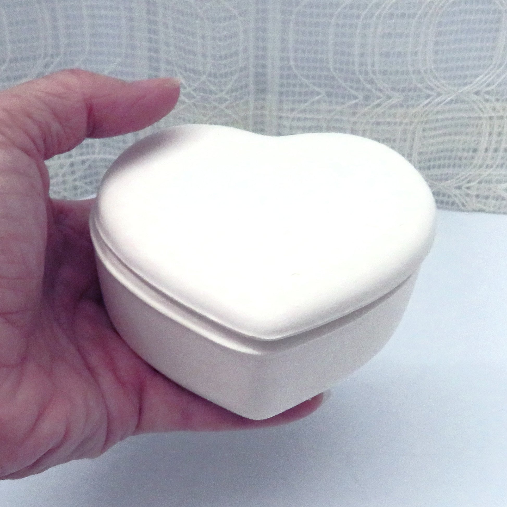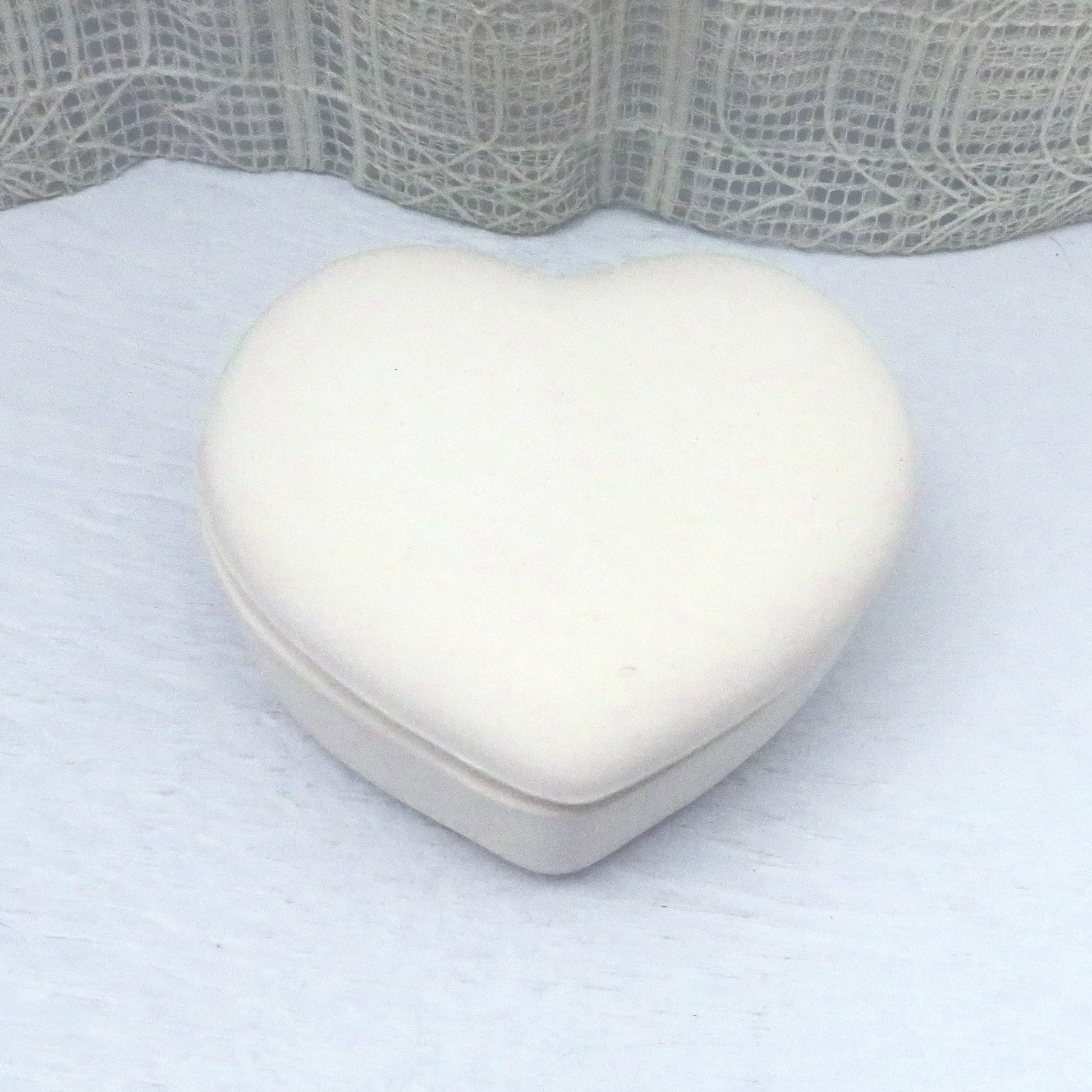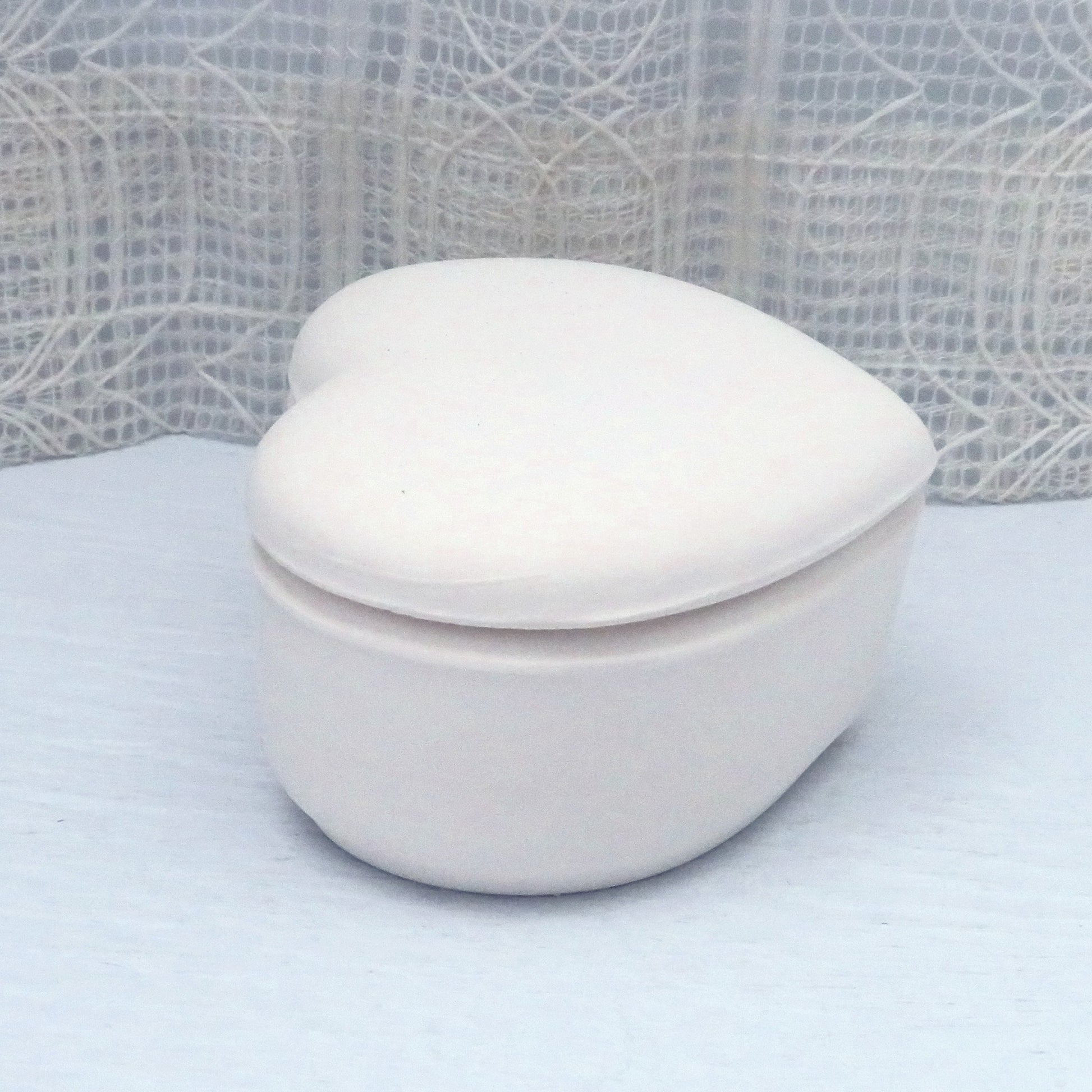 Handmade Ready to Paint Ceramic Heart Trinket Dish with Lid / Ceramic Jewelry Dish to Paint / Do It Yourself Ceramic Lidded Heart Box