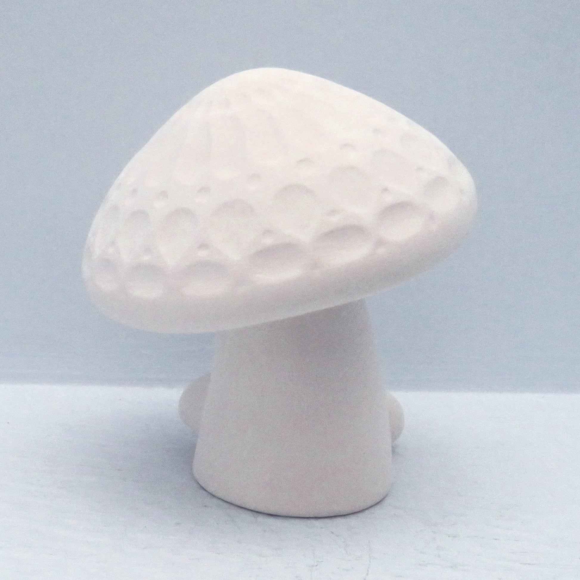 This mushroom was slip cast in my studio and fired to cone 04. It is ready to paint with acrylics or to be glazed and fired to cone 06 if you have access to a kiln. This mushroom is approximately 3 3/4 inches tall and 3 1/2 inches in diameter. There are 2 little mushrooms at the base of the bigger mushroom.