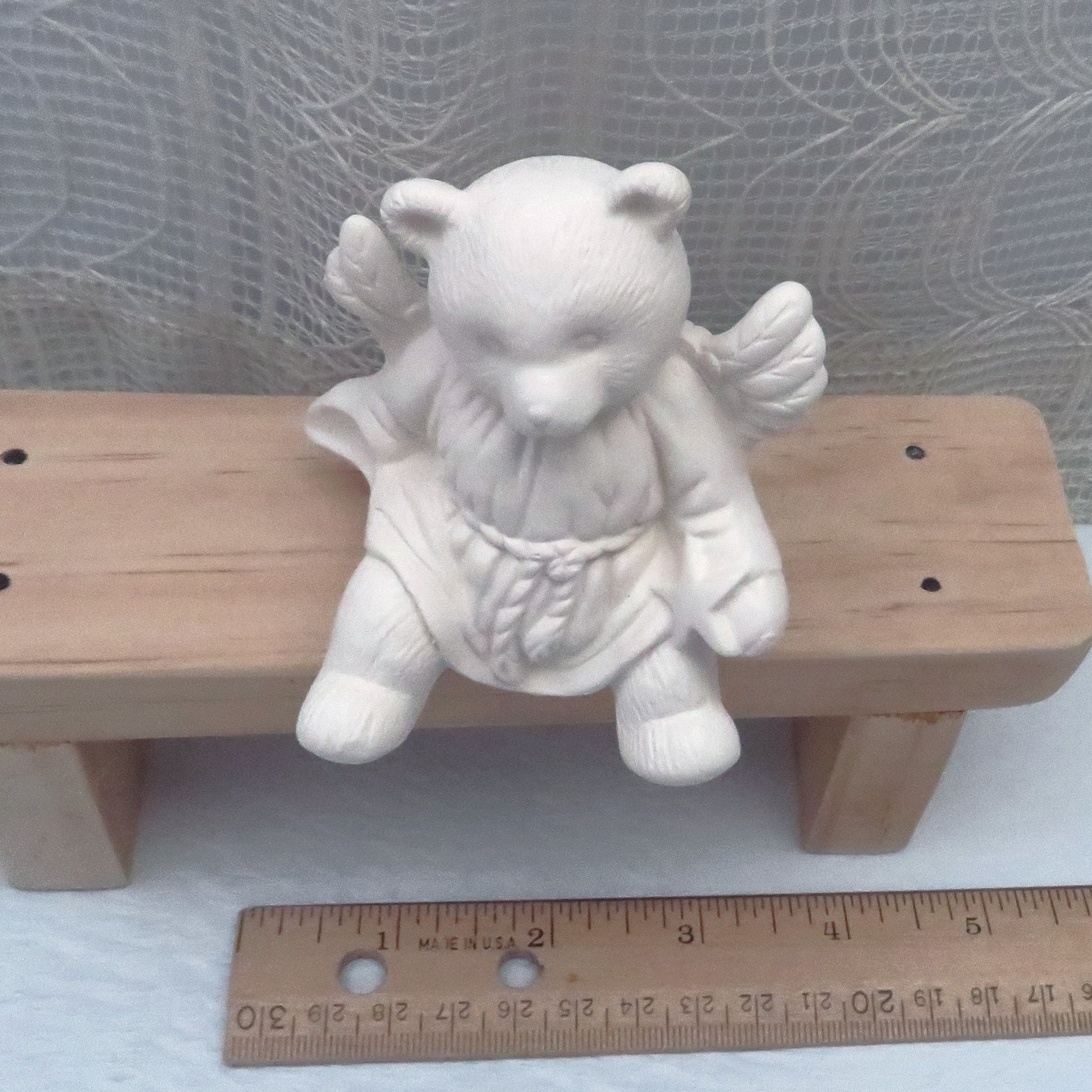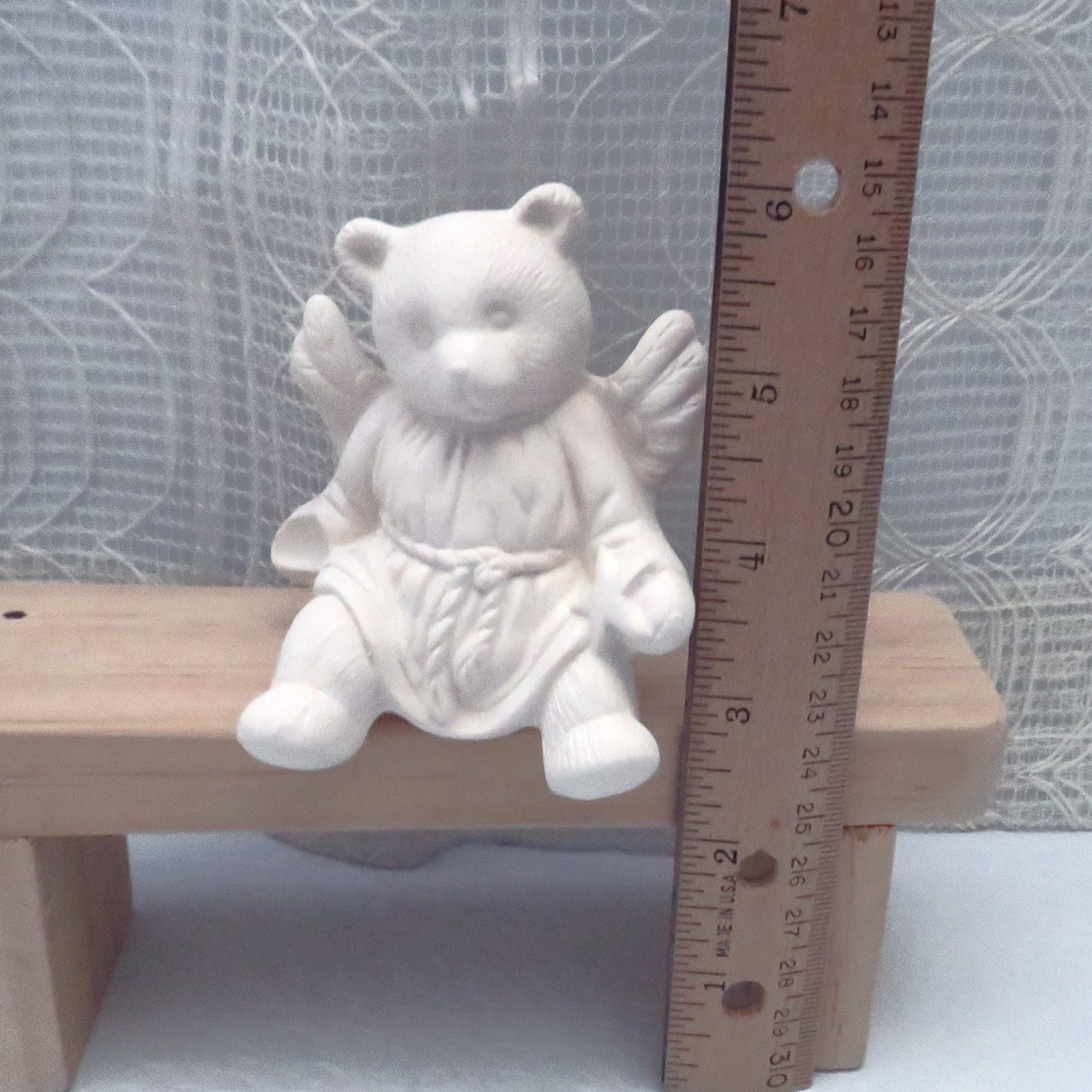 Handmade Ready to Paint Ceramic Sitting Angel Bear Figurine, Paintable Ceramics, Unpainted Bear Angel Statue