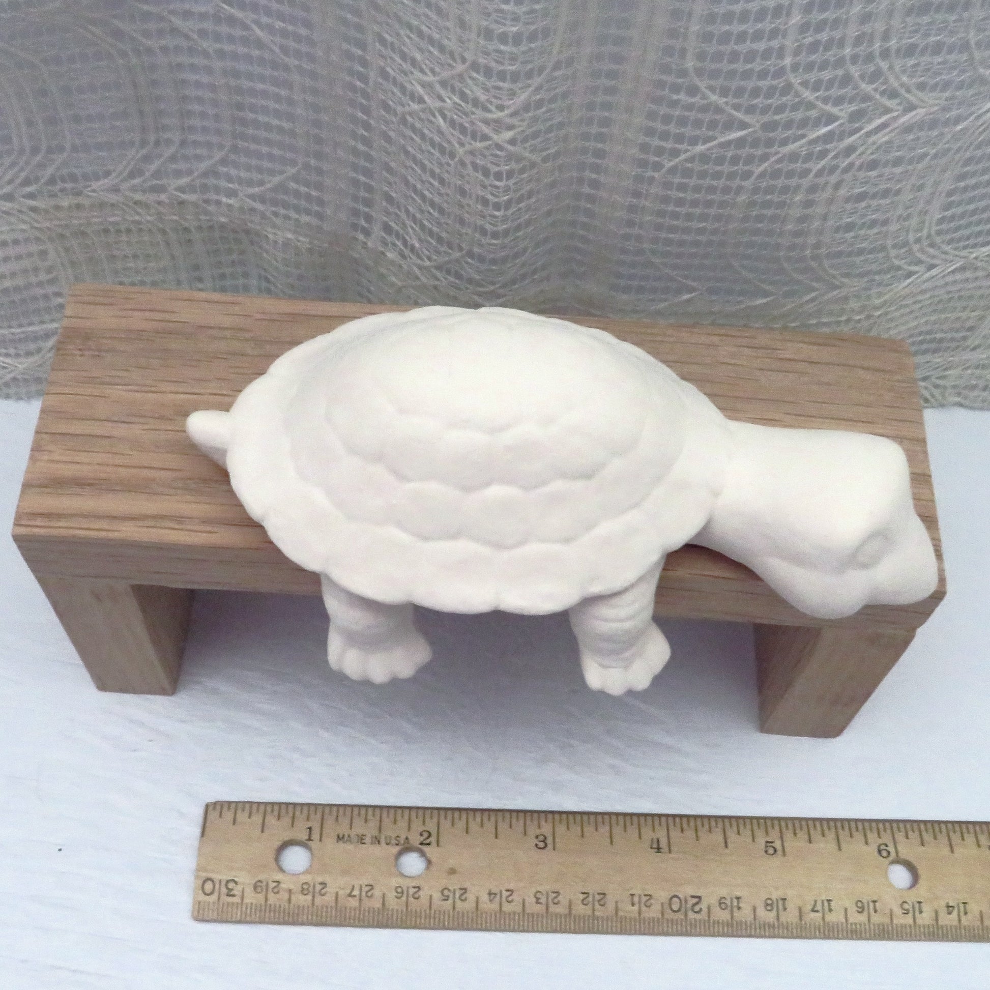 This unpainted ceramic turtle figurine will bring a smile to your face as you paint him with acrylic paints, or glaze him for your own collection of handmade ceramic turtle decor or gift giving.