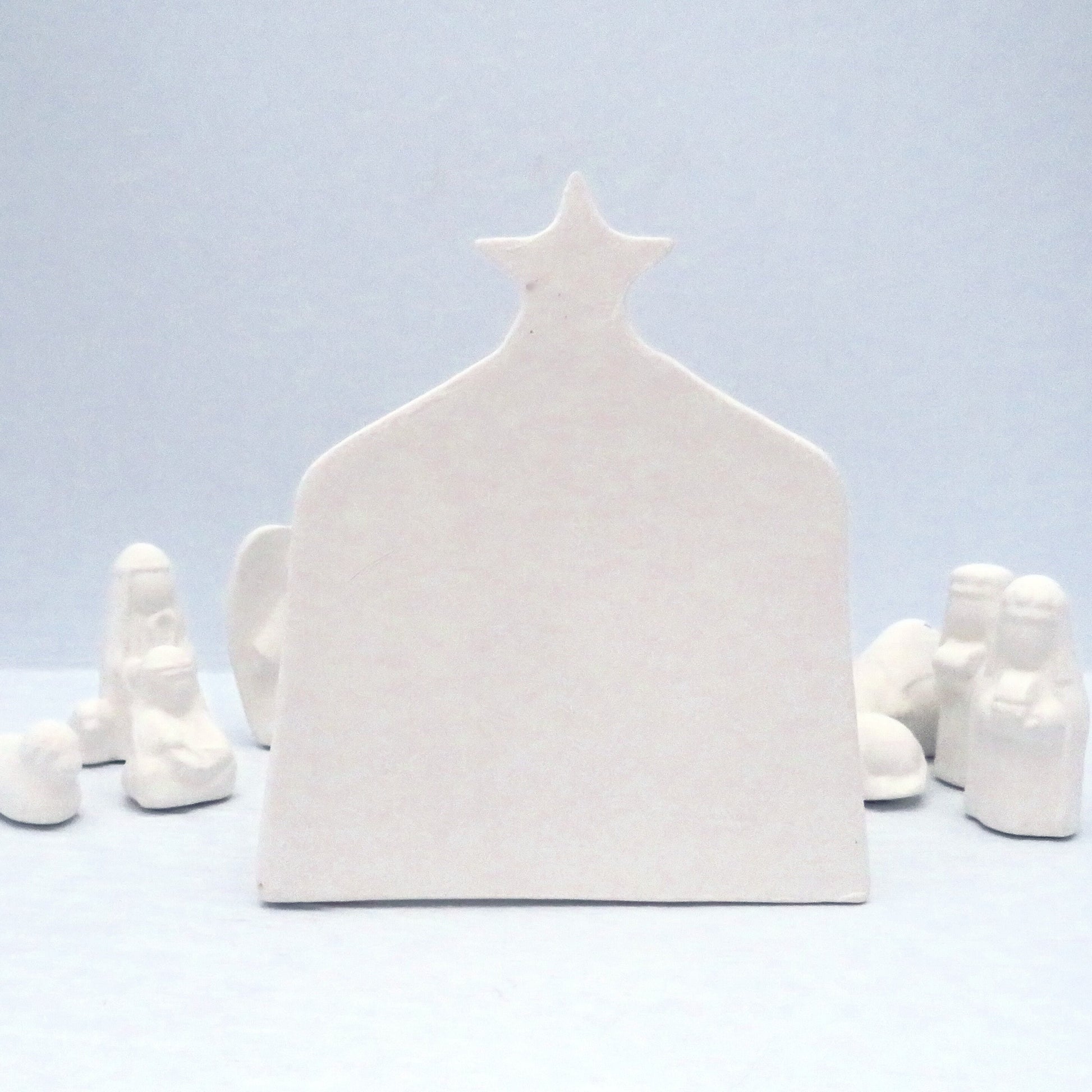 This small, unpainted ceramic nativity set is ready to be painted in your favorite colors and style.
