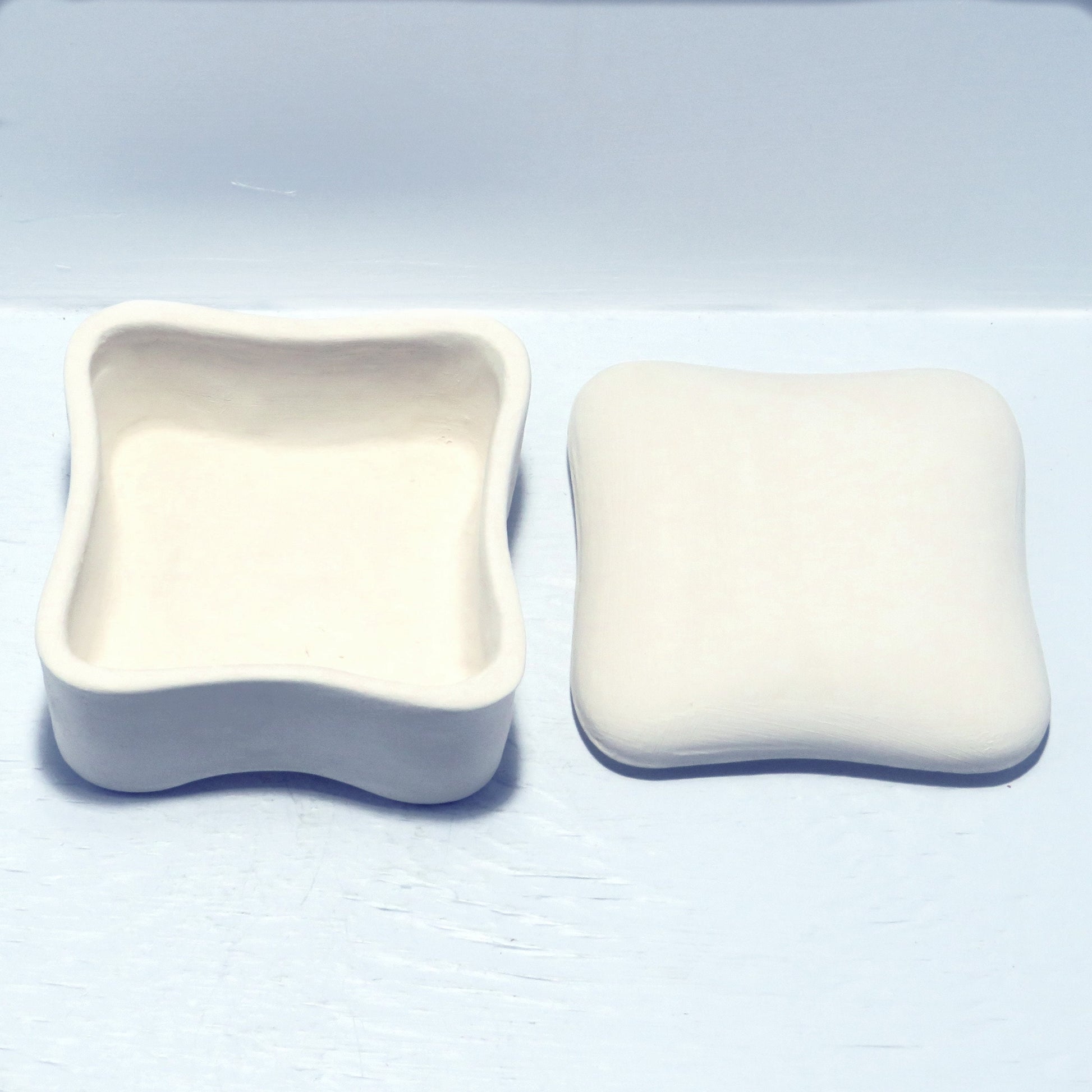 Handmade Ready to Paint Square Trinket Dish with Lid / Ceramics To Paint / Paintable Ceramic Jewelry Dish / Gift For Her / Paint it Yourself