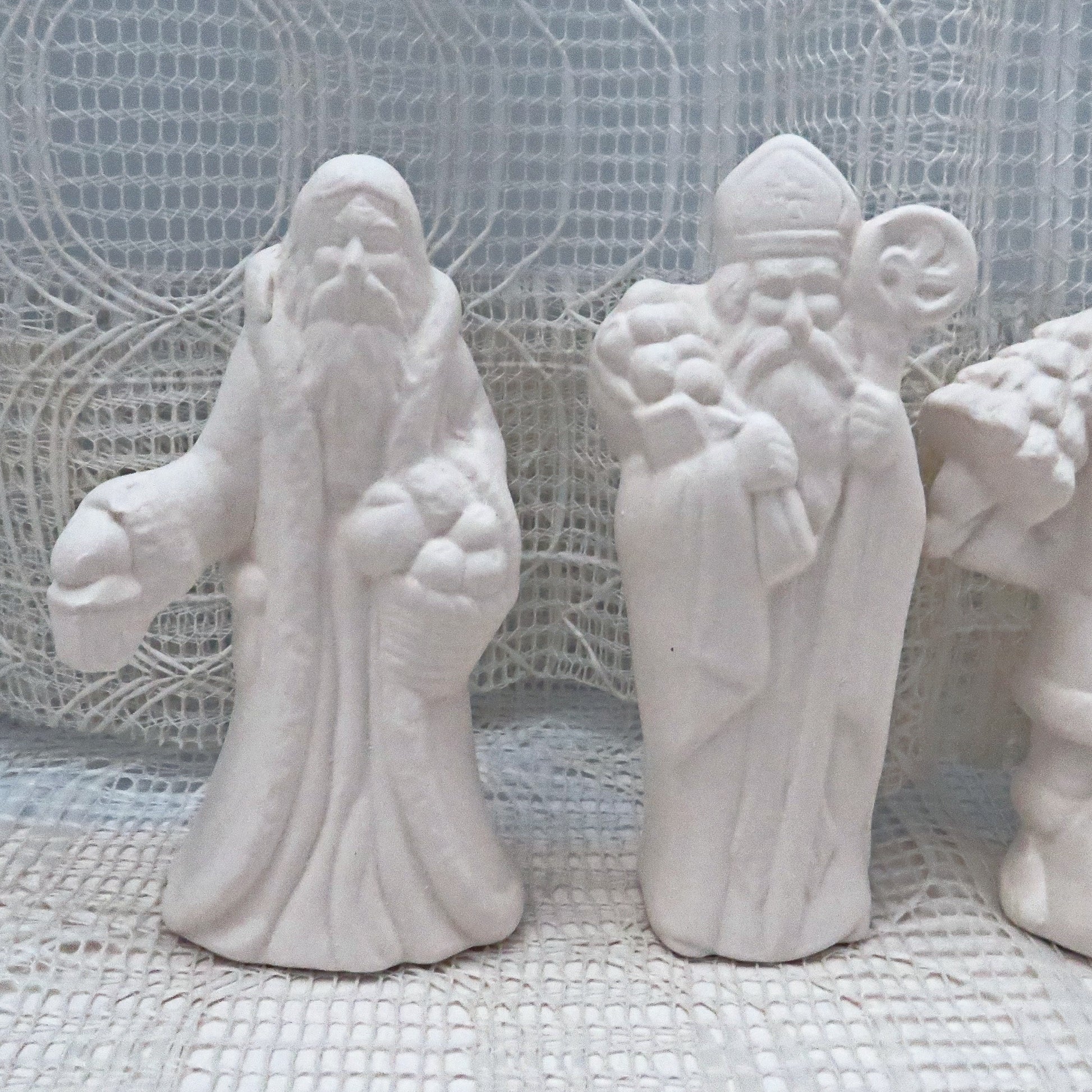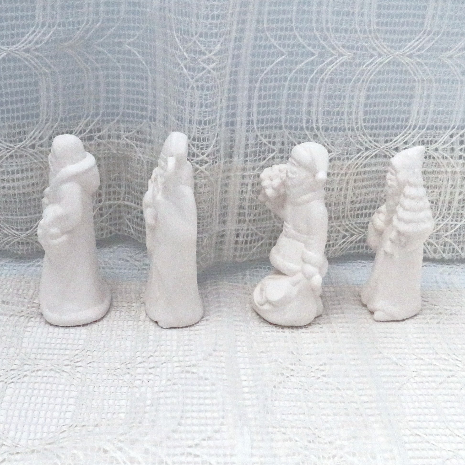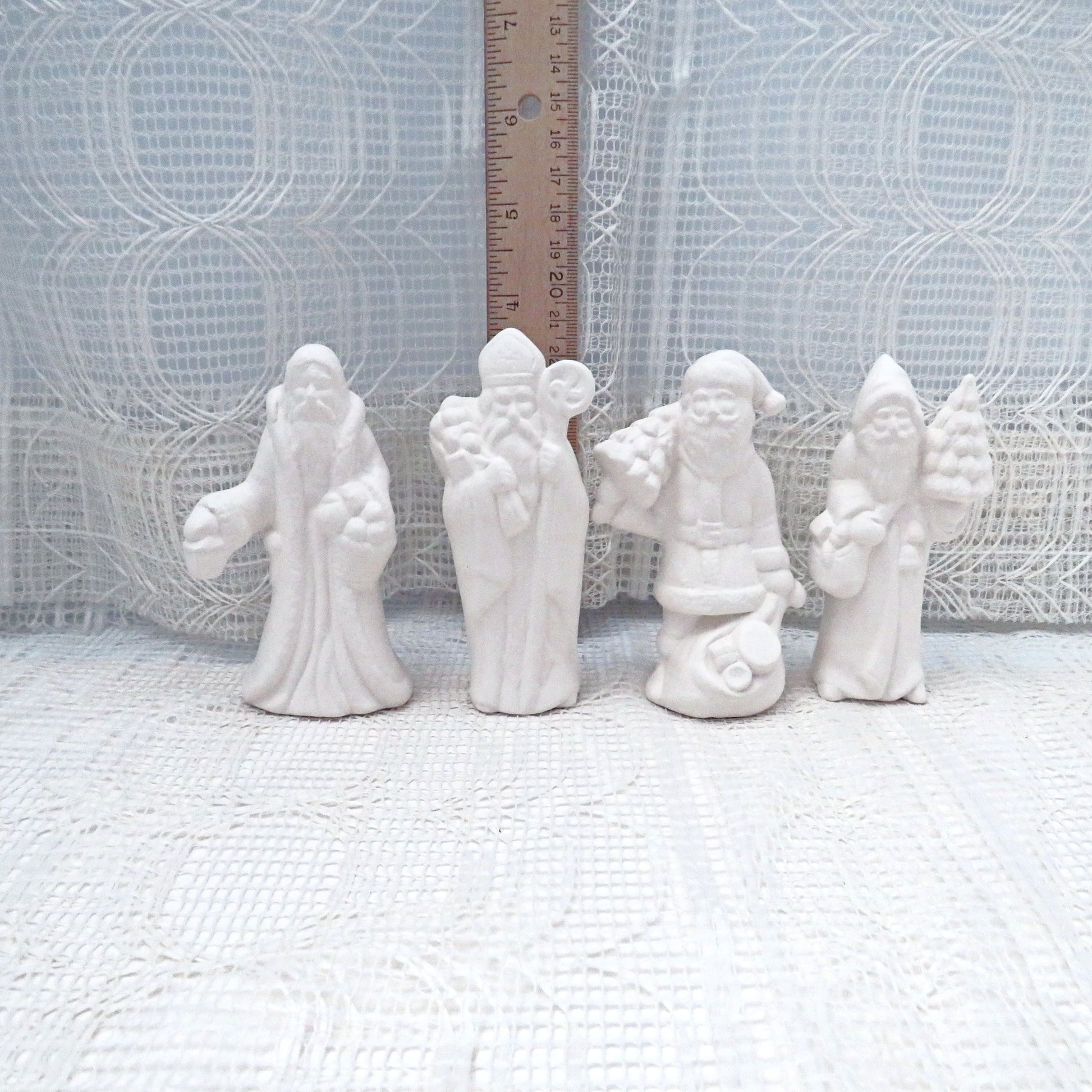 Handmade Set of 4 Ready to Paint Ceramic Santa Figurines for You to Paint for Christmas Decor
