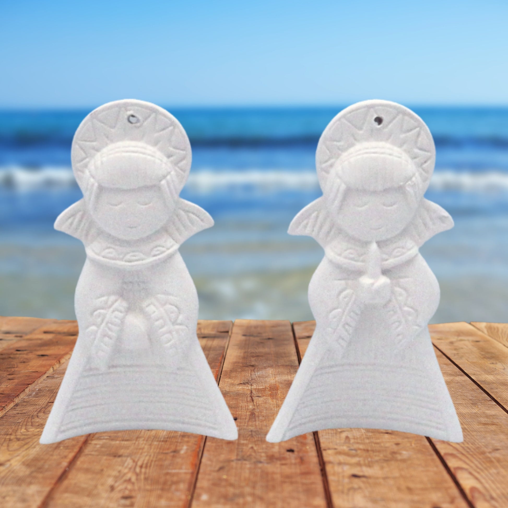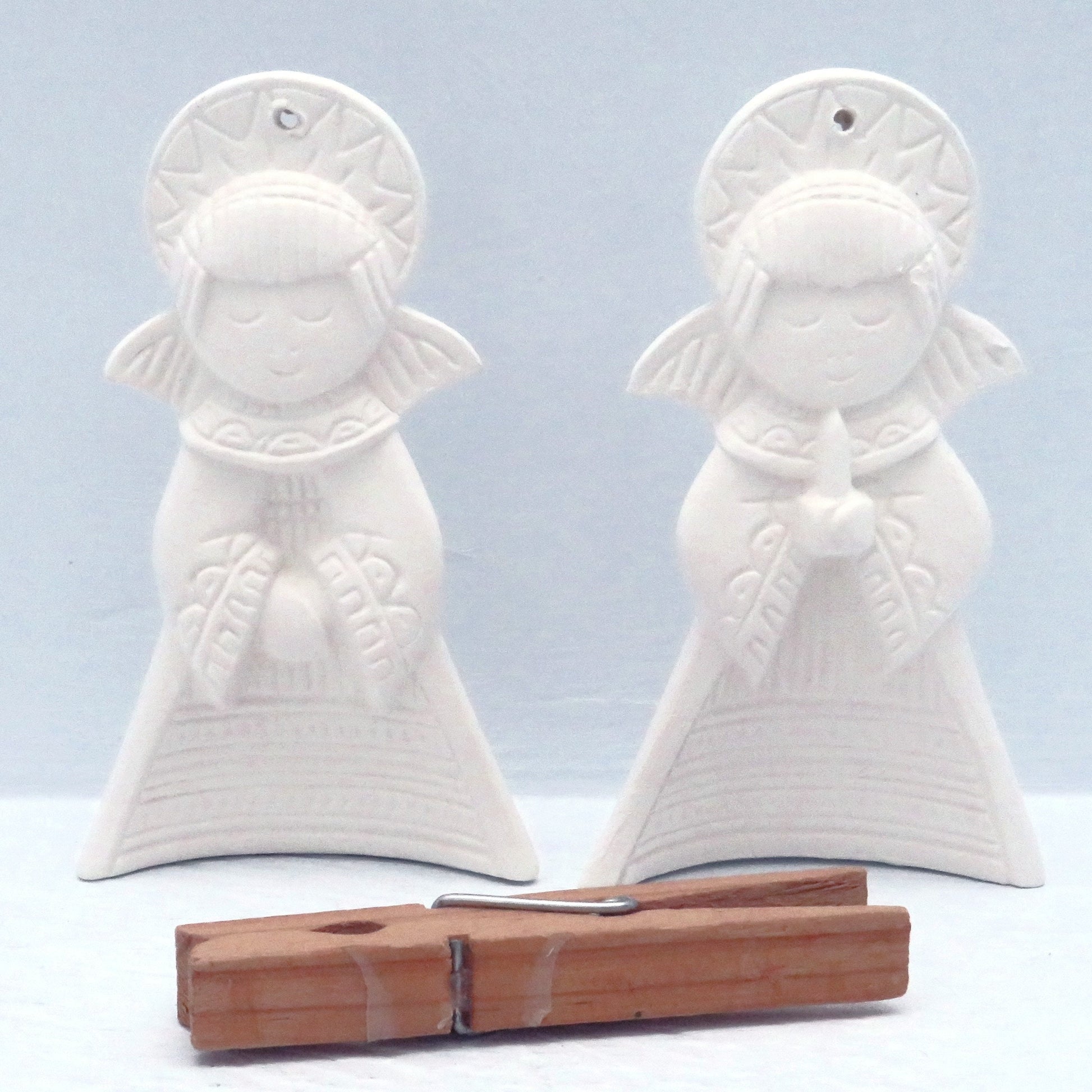 Are you looking for memories to hang on your Christmas Tree this year? These handmade unpainted ceramic angel ornaments are perfect for what you need. They would be great to let the kids paint them for decorations, or for you to paint and give as a gift. You could also paint them and use them as a pendant for a special necklace.