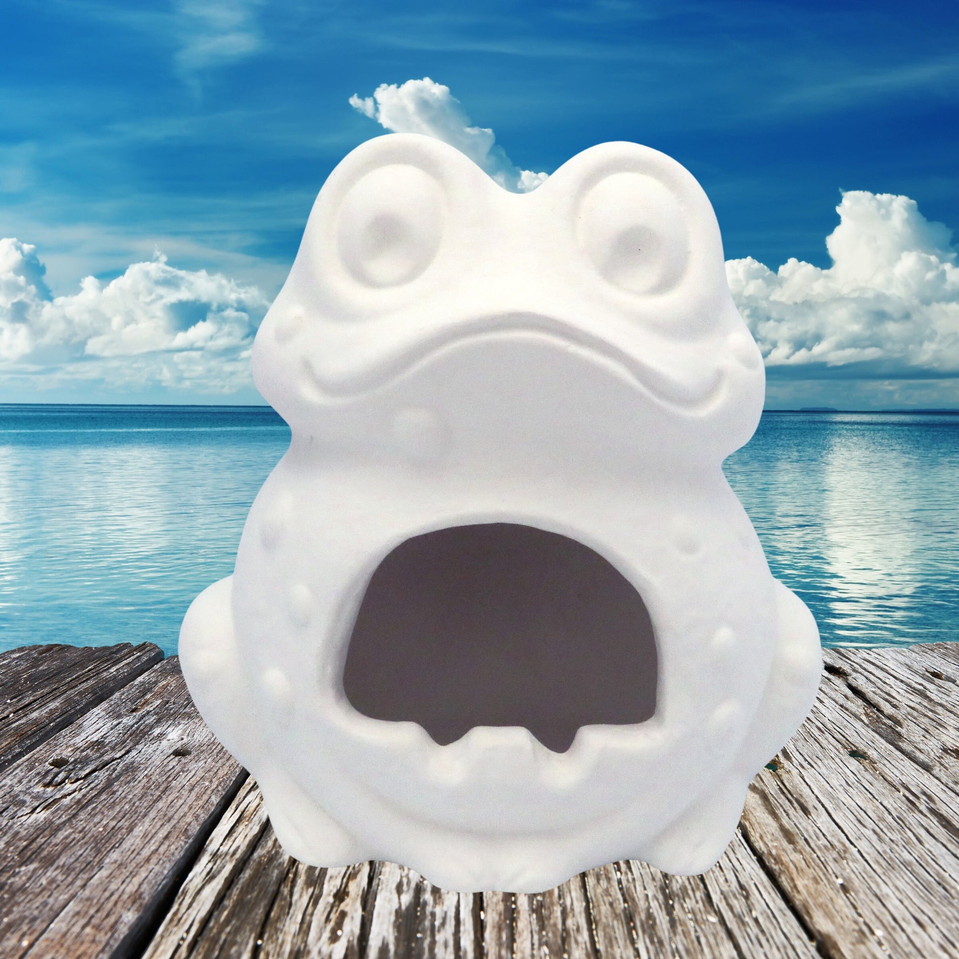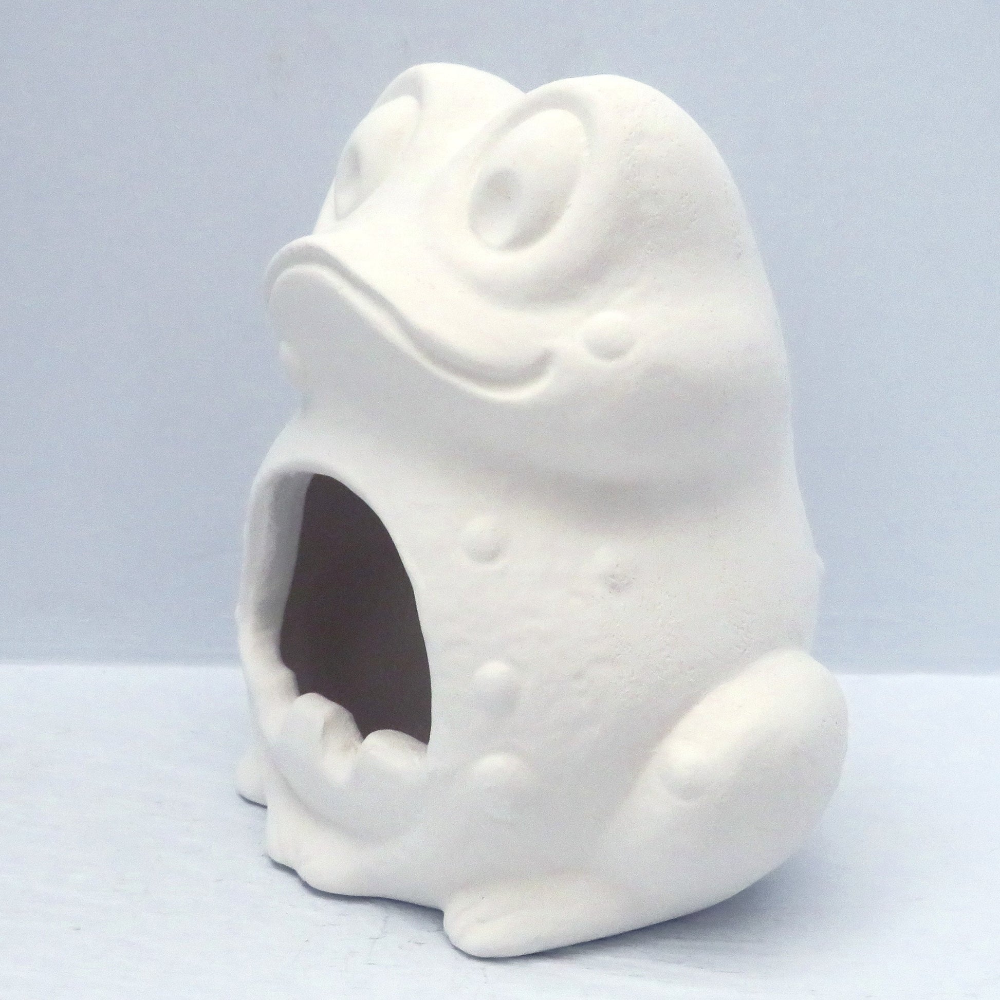 This unpainted ceramic bisque frog sponge holder was slip cast in my studio and fired to cone 04. It is ready to paint or to glaze and be refired to cone 06.