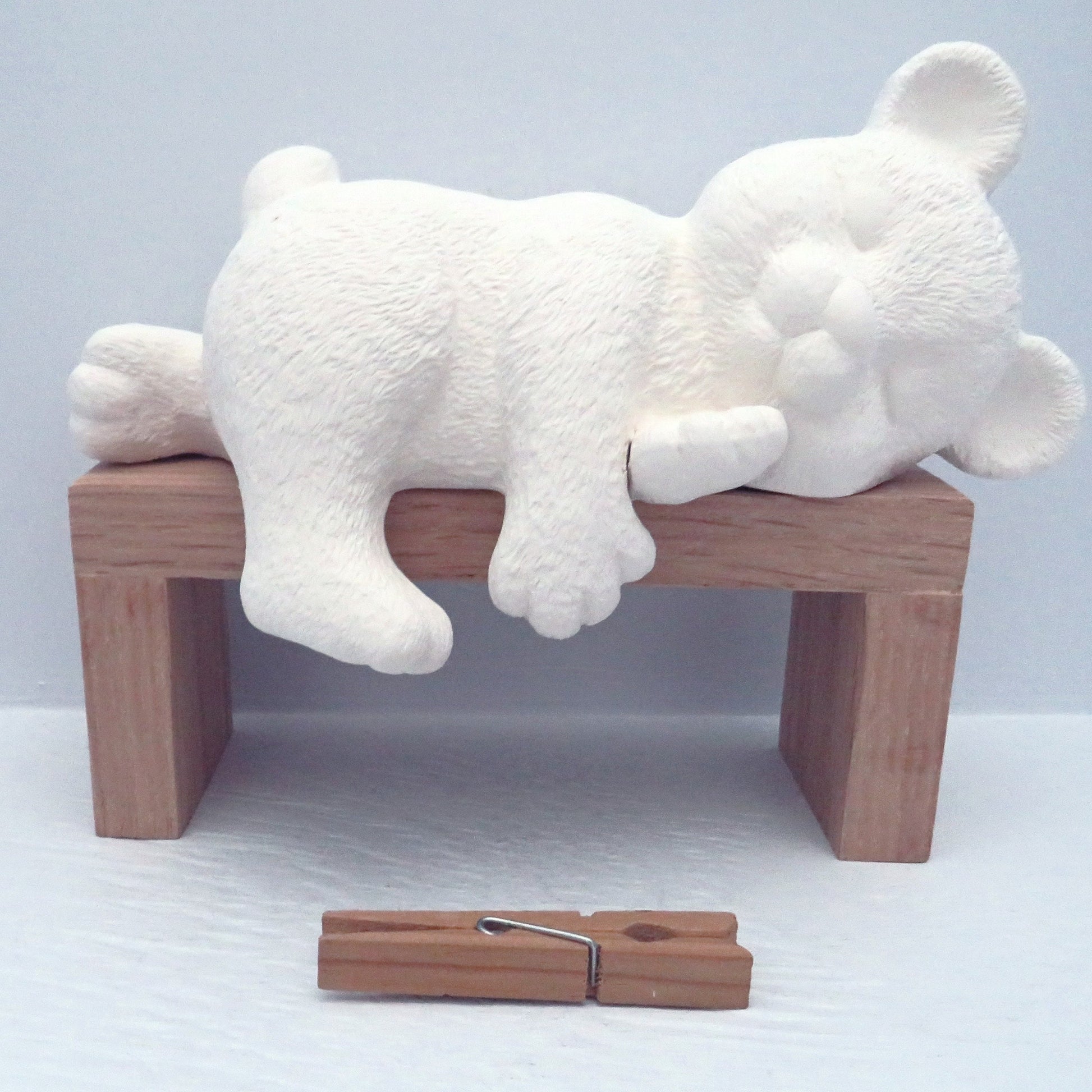 Handmade Unpainted Ceramic Bisque Sleepy Shelf Bear Figurine, Paintable Ceramic Resting Bear Statue, Ceramics to Paint, Ready to Paint