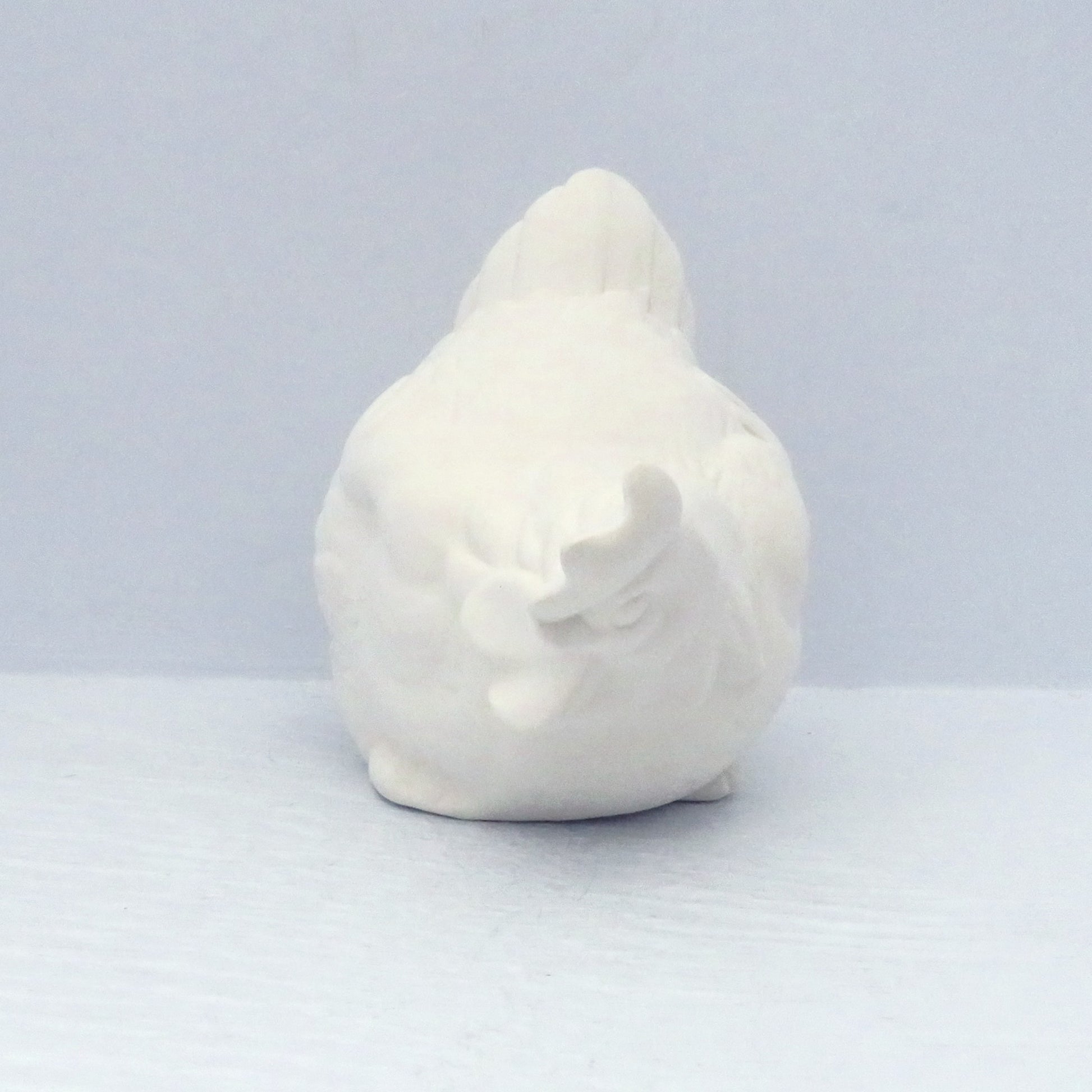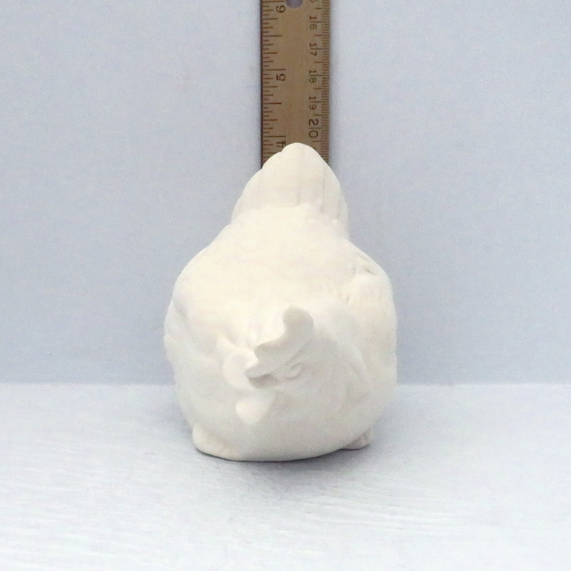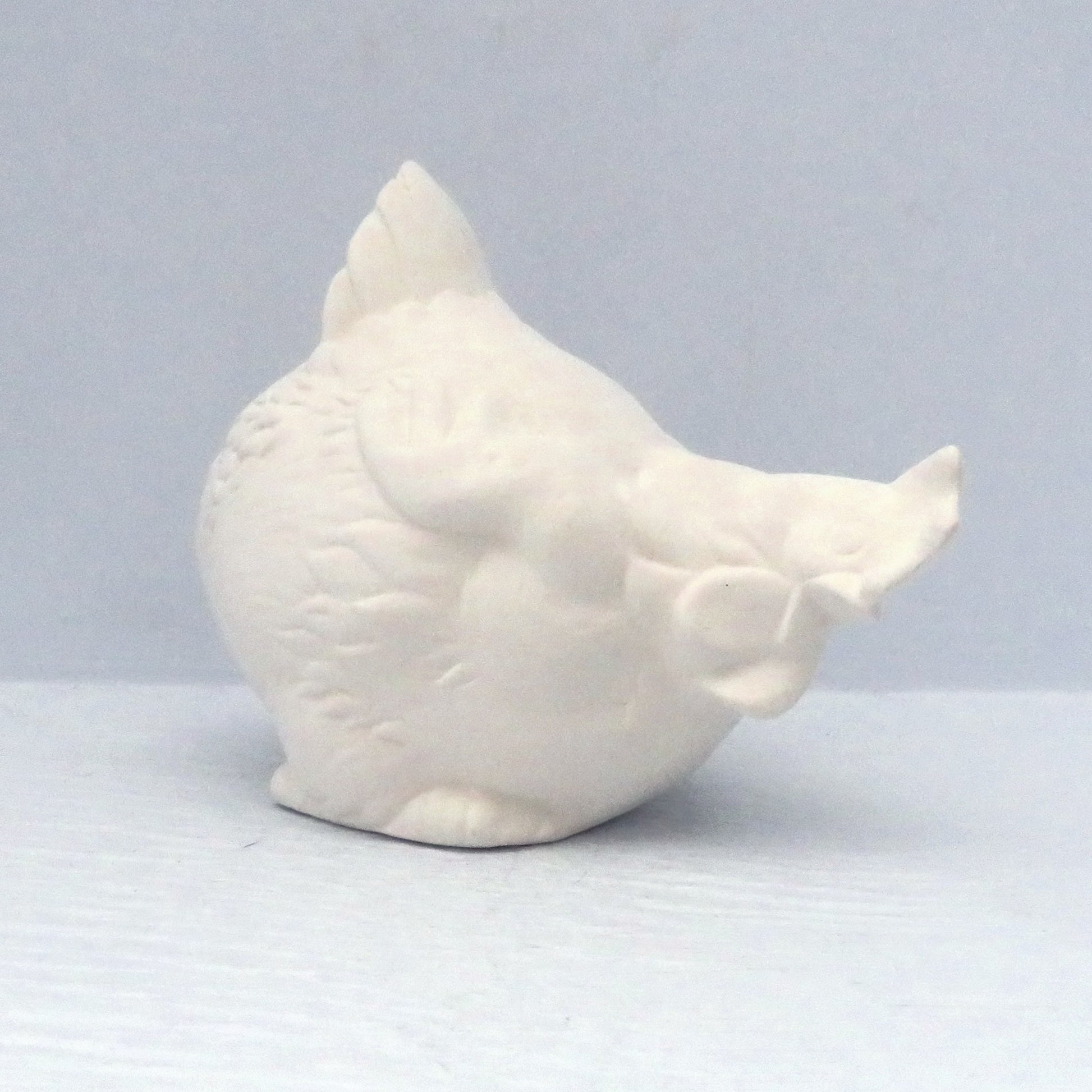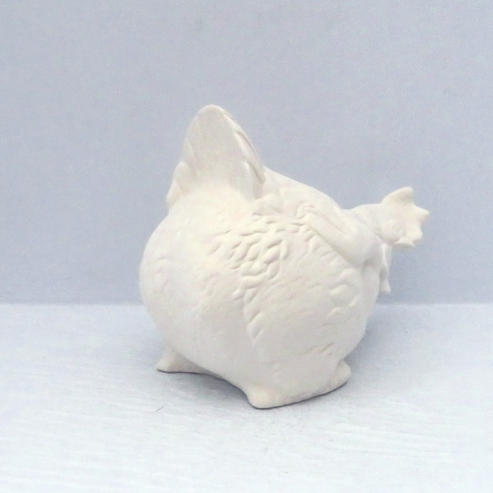 It's easy to smile when you're looking at a chicken pecking seed off the ground! This unpainted ceramic chicken figurine is ready for you to paint with acrylic paints or to glaze and refire to cone 06.