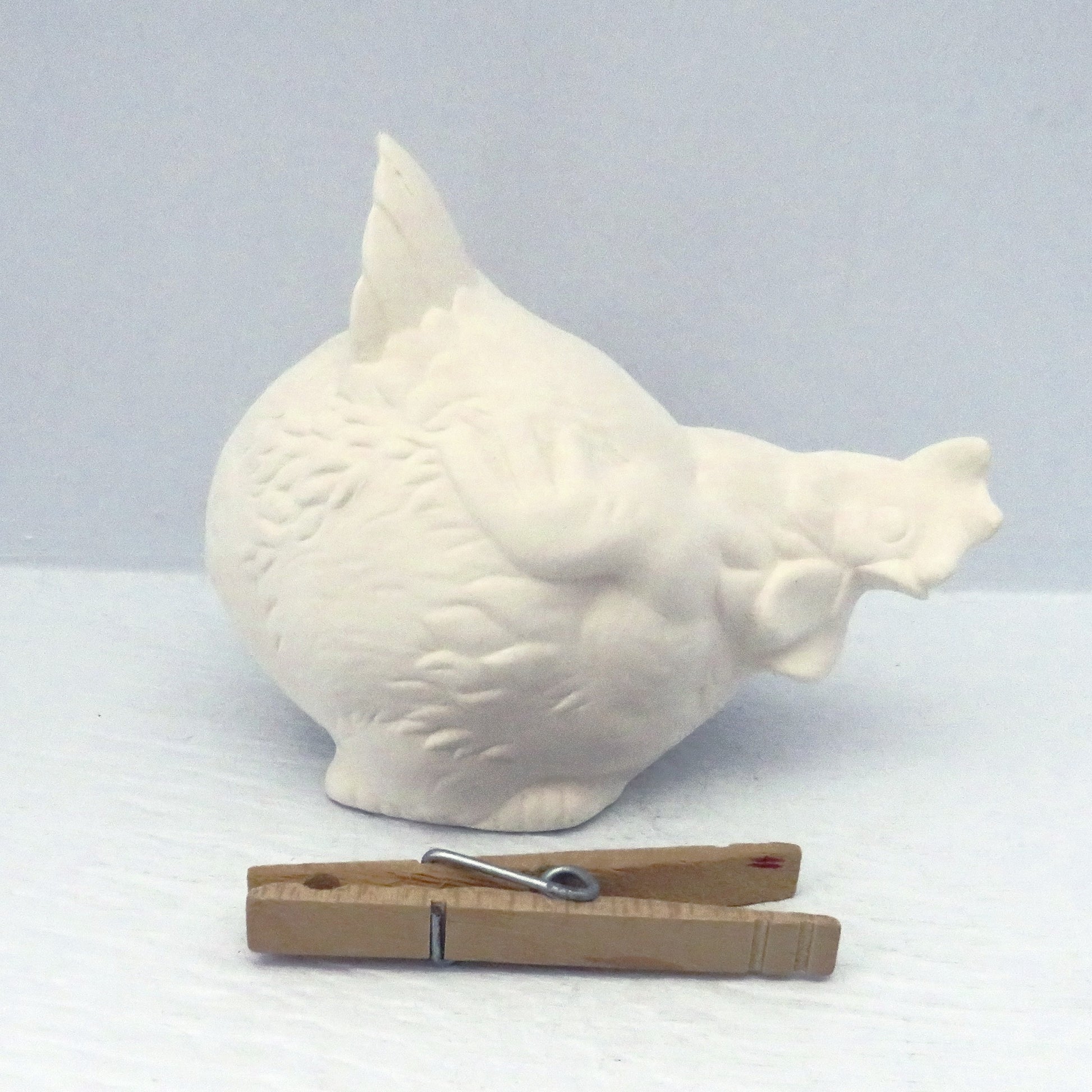 Handmade Unpainted Ceramic Chicken Figurine, Ready to Paint Hen Statue