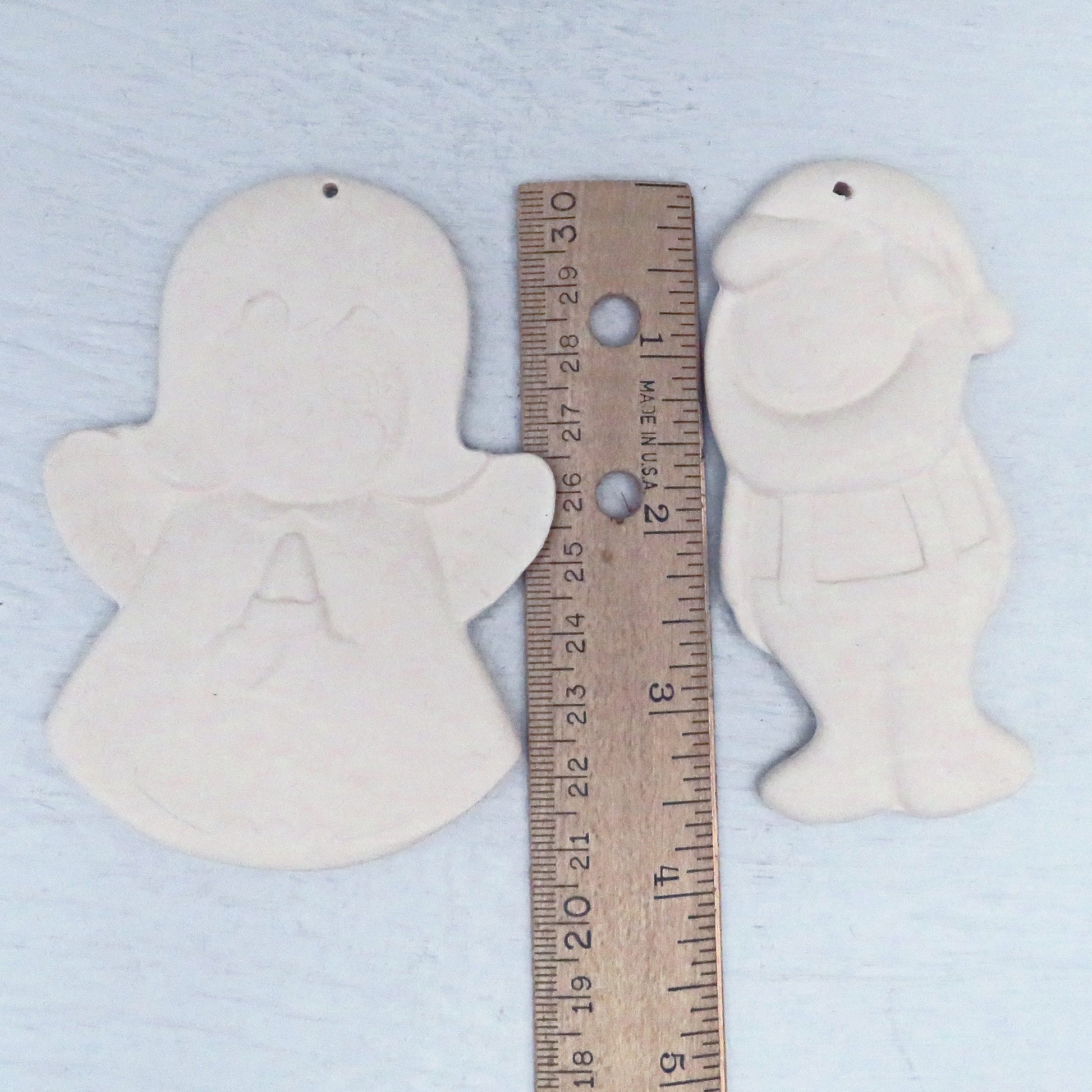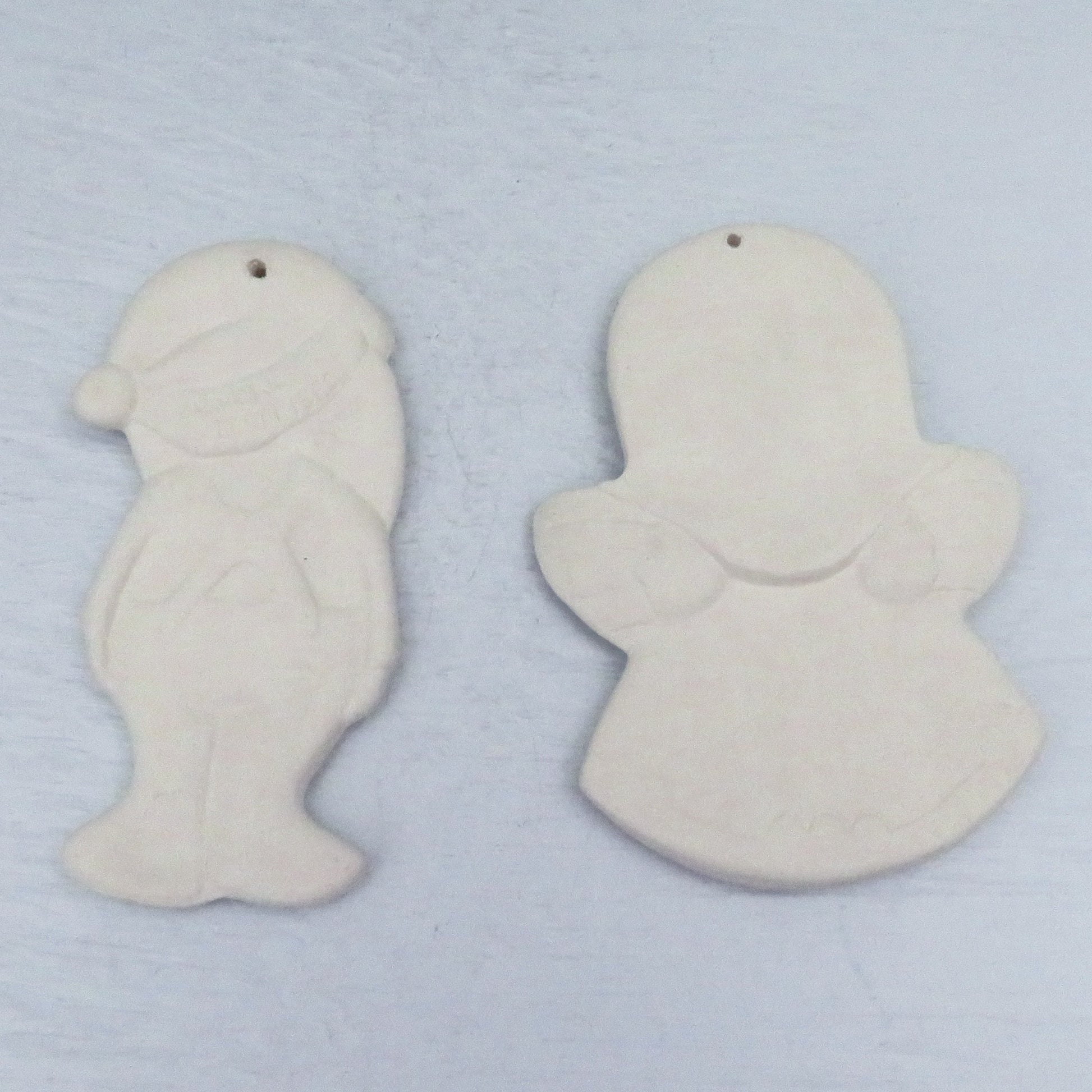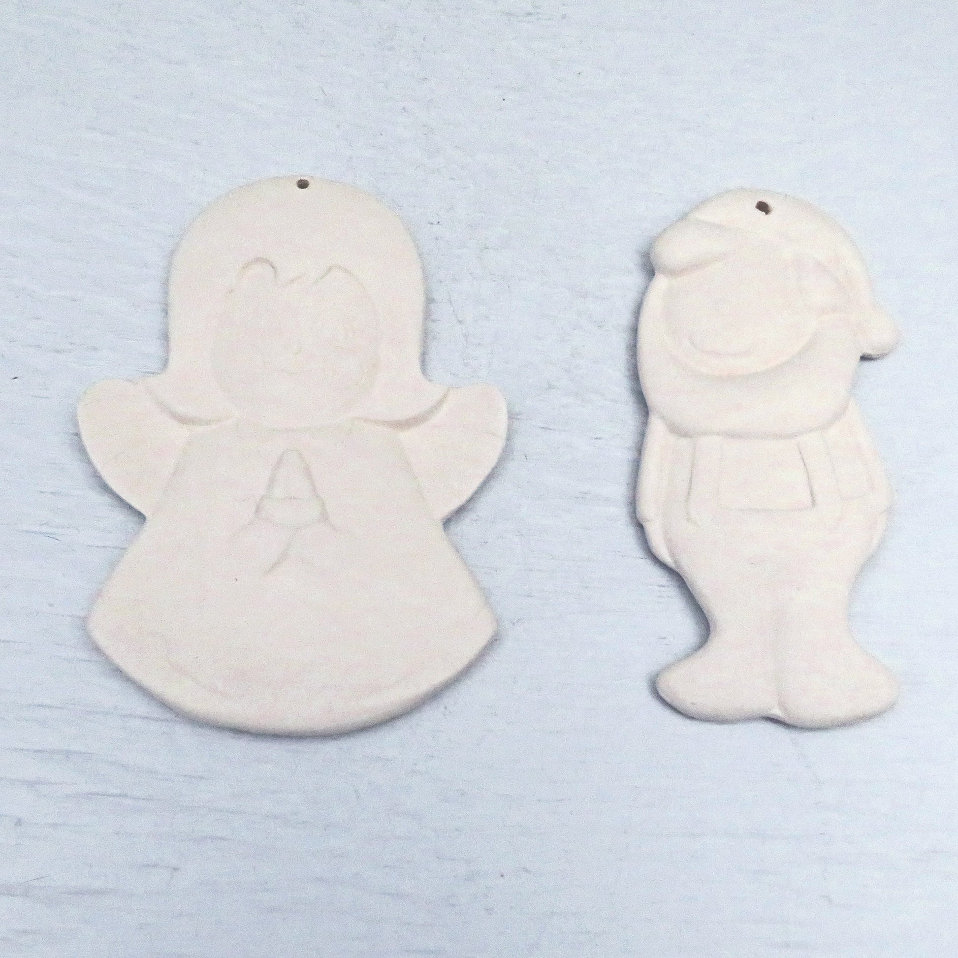 Handmade Unpainted Ceramic Christmas Tree Ornaments for Christmas Decor, Ready to Paint Angel and Elf Ornaments