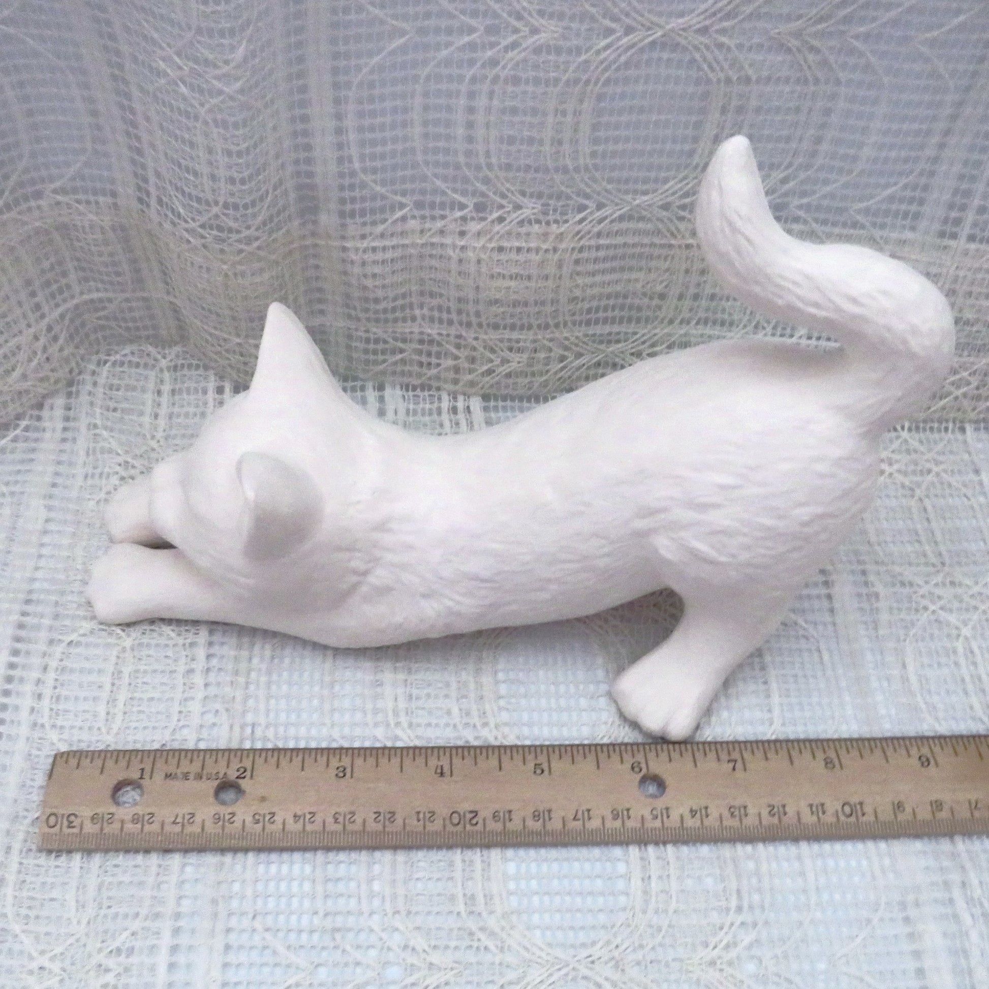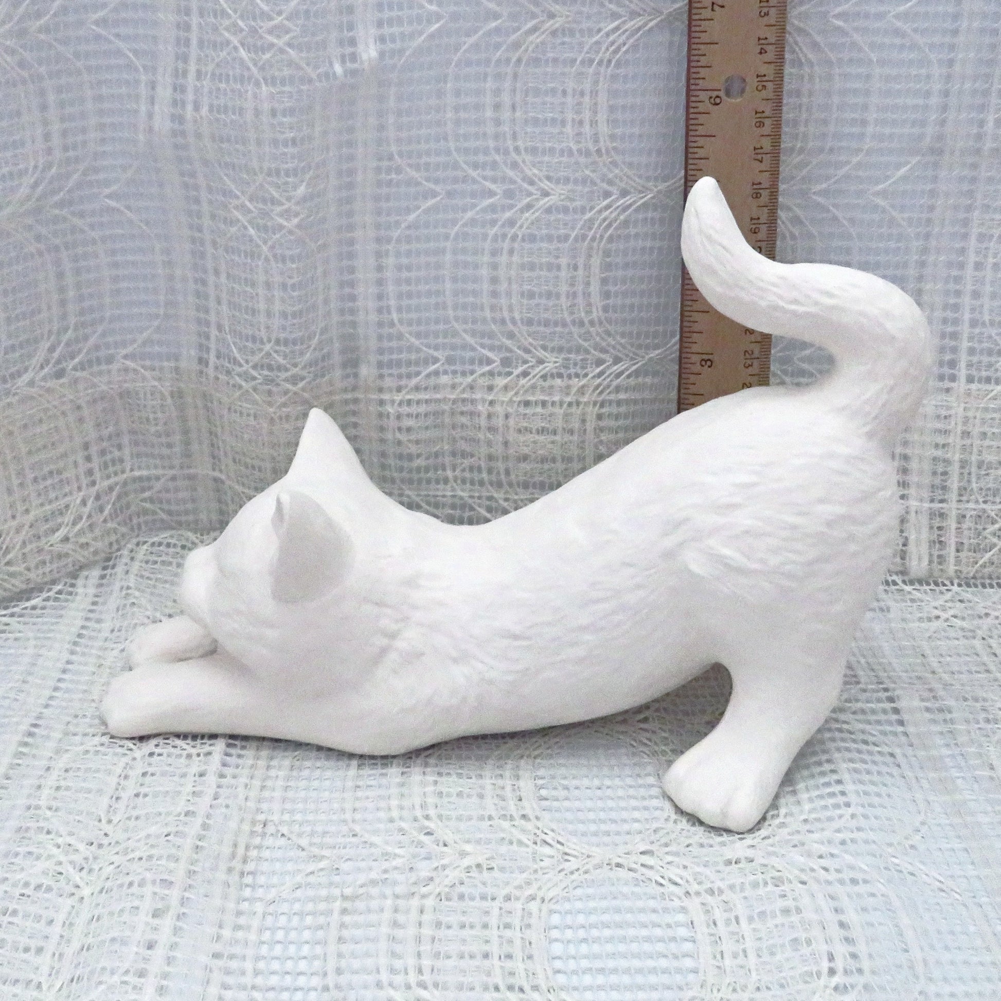 Ready to Paint Ceramic Cat Figurine, Paint it Yourself Stretching Cat Statue, Bisqueware, Paintable Ceramics, Cat Decor, Cat Lover Gift