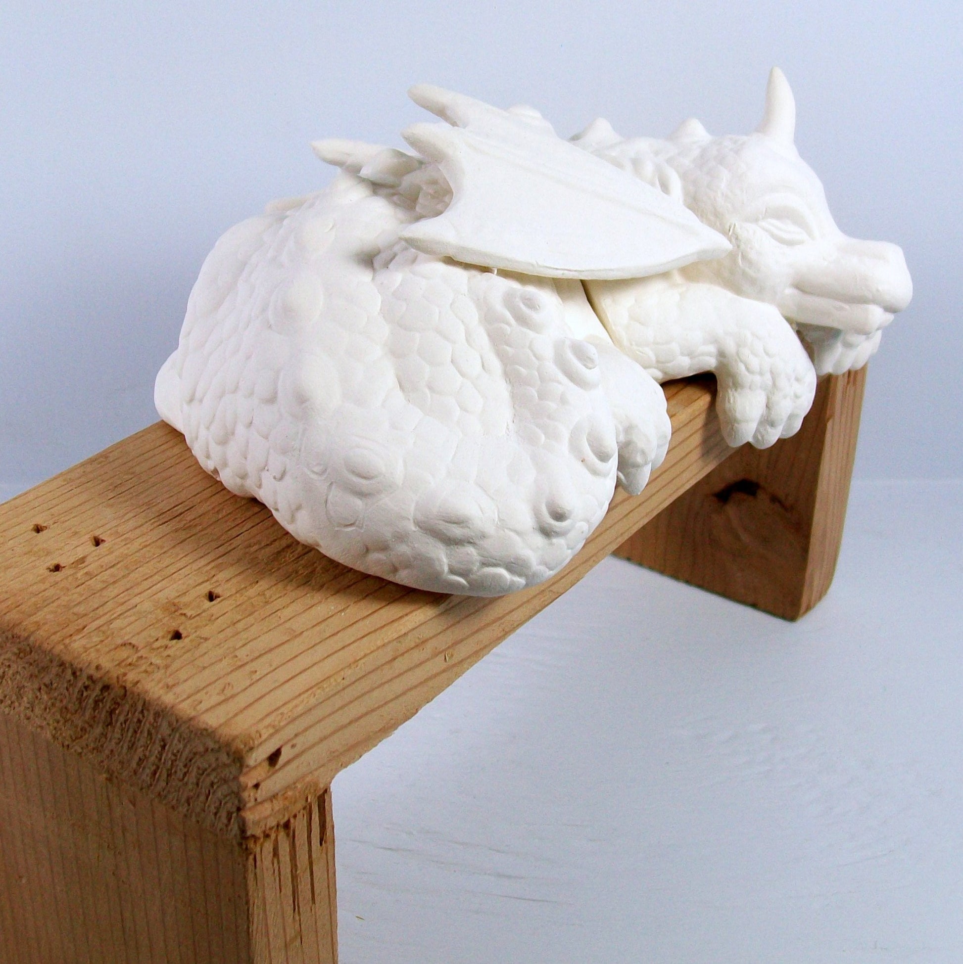 Handmade Unpainted Bisque Sleepy Shelf Dragon Figurine, Ceramic Dragon Statue, Ceramics to Paint, Paintable Ceramics, Ready to Paint