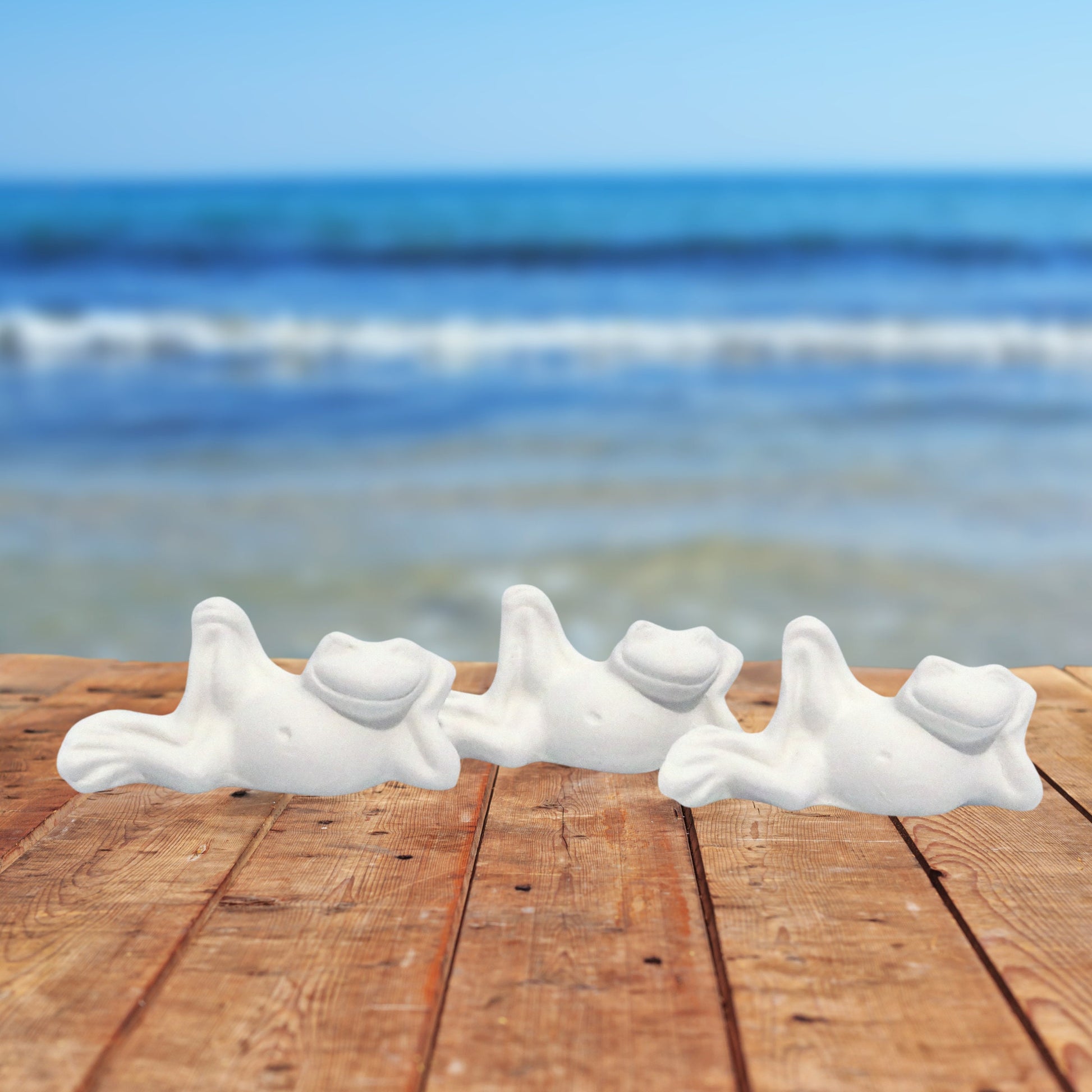 Small Unpainted Ceramic Bisque Frog Figurines / Set of 3 Frog Statues / Bisqueware / Ceramics to Paint / Paint it Yourself / Ready to Paint