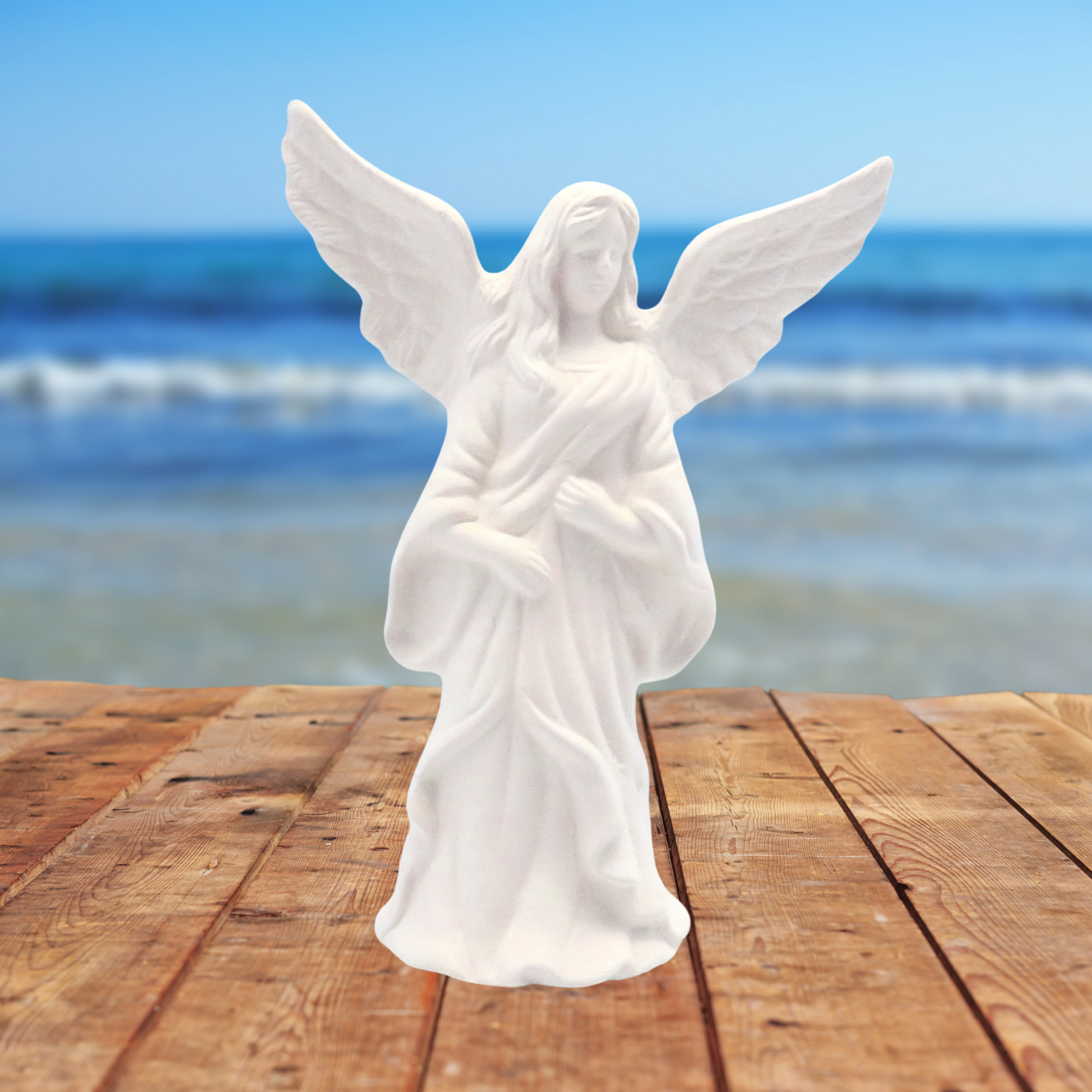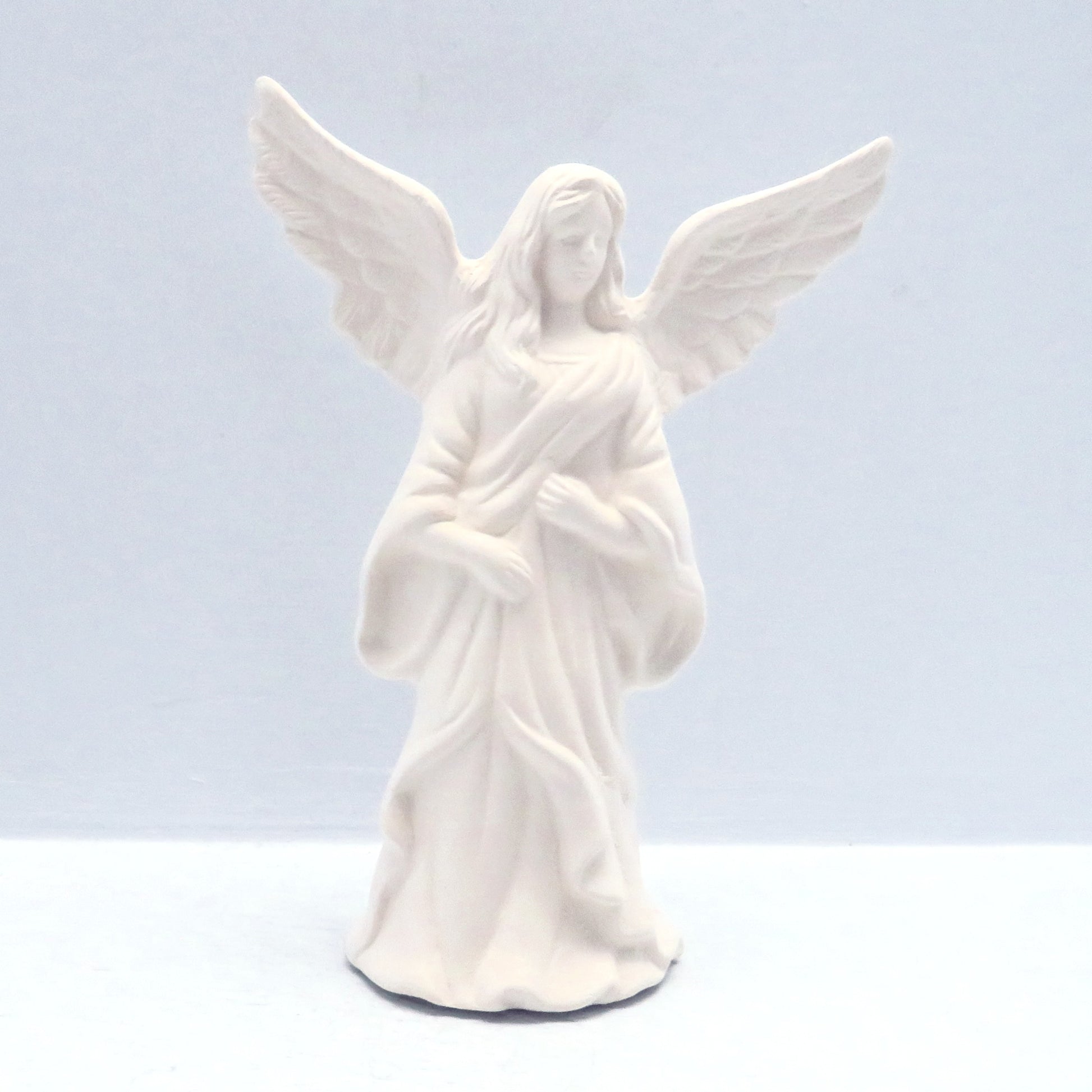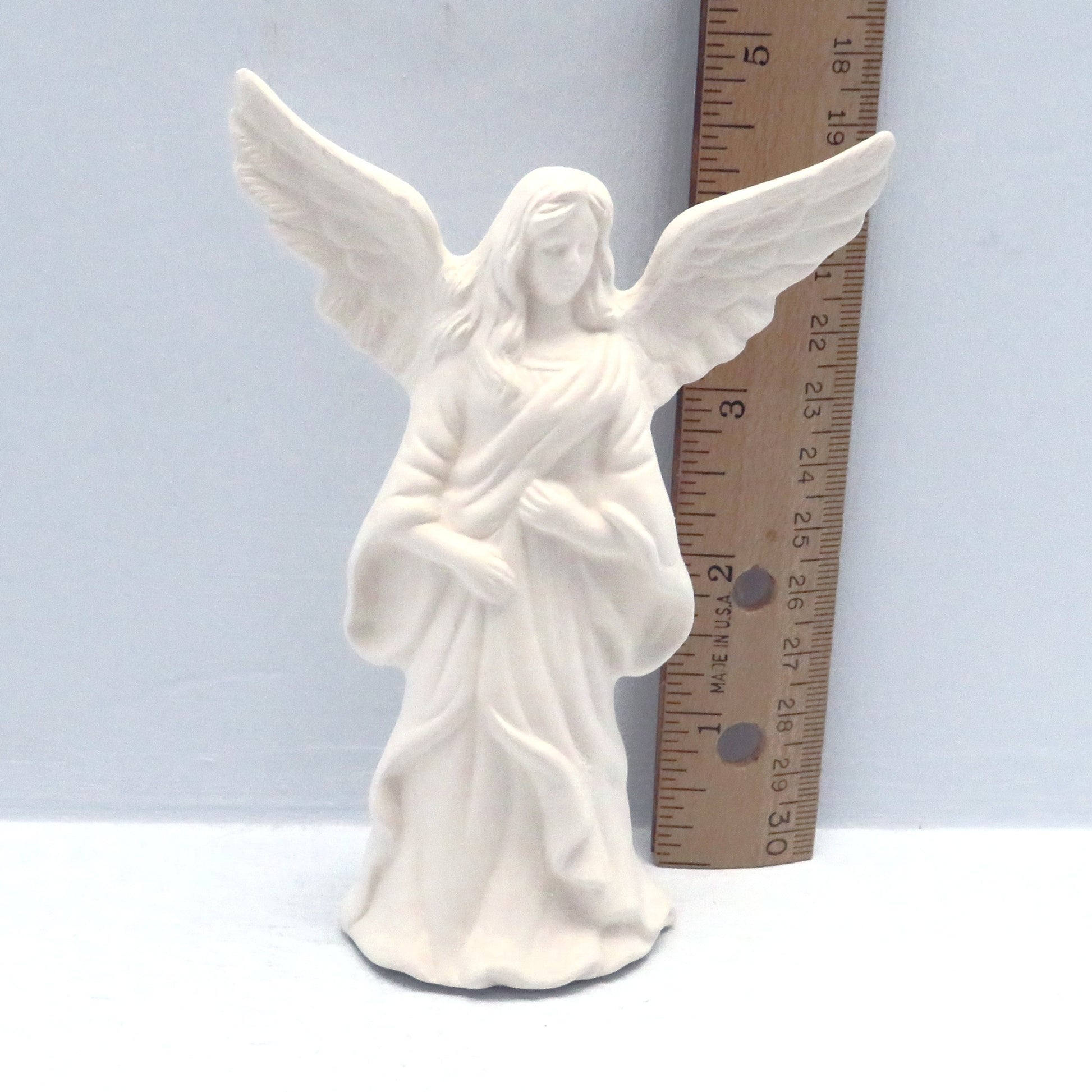 Unpainted Ceramic Bisque Angel Figurine / Angel With Wings Up / Ready to Paint / Ceramics to Paint / Angel Statue / Paintable Ceramics