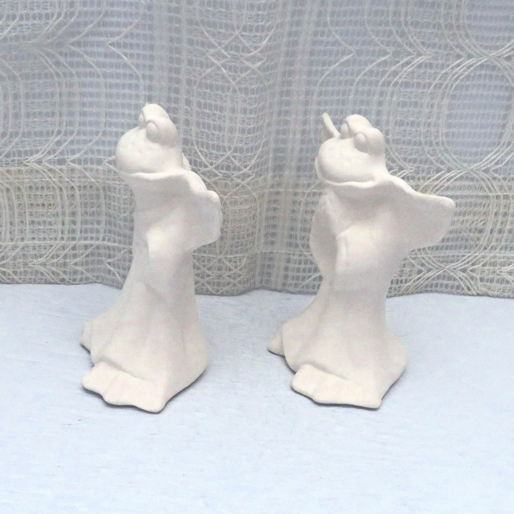 Unpainted Ceramic Bisque Frog Angel Figurines, Ready to Paint Ceramic Frog Figurines
