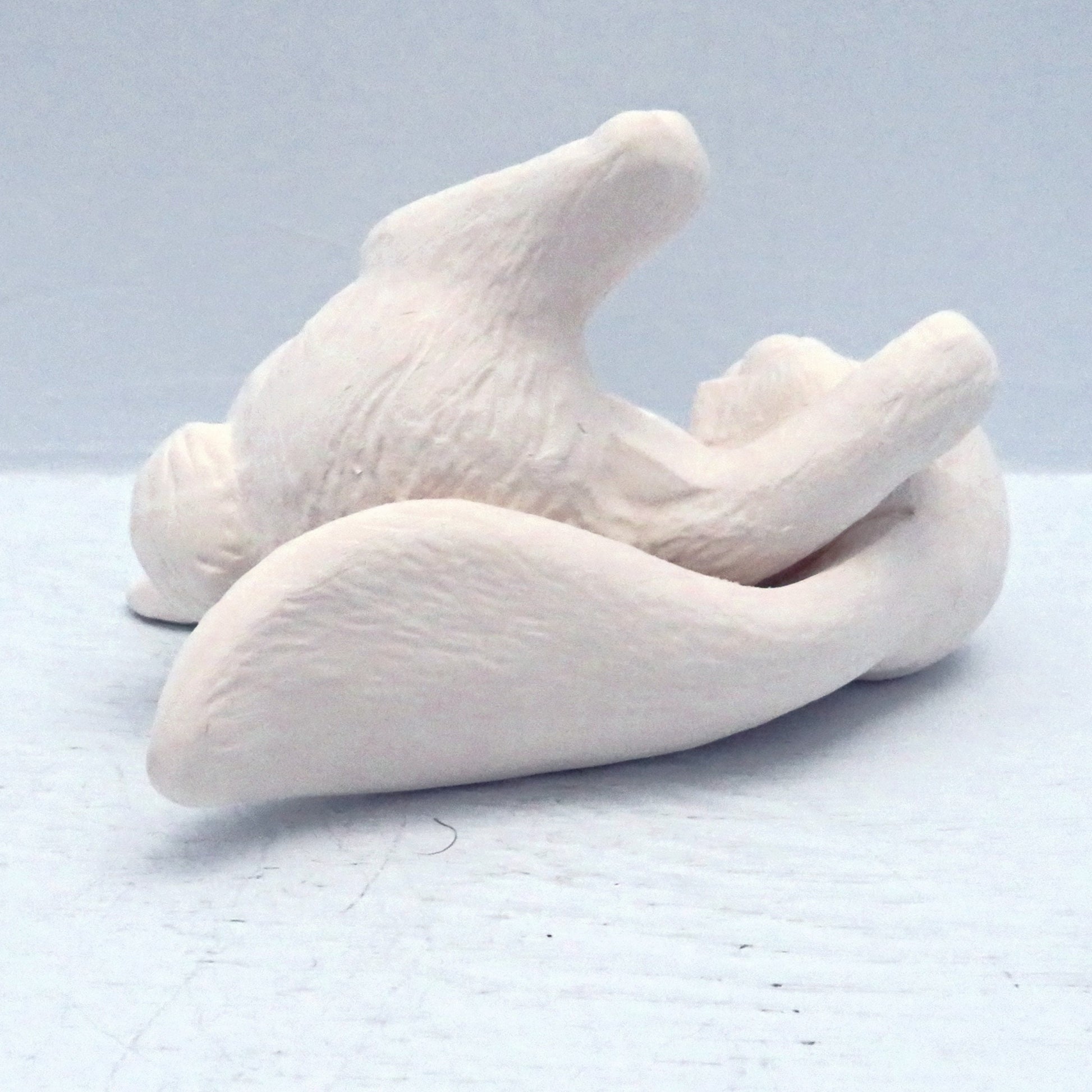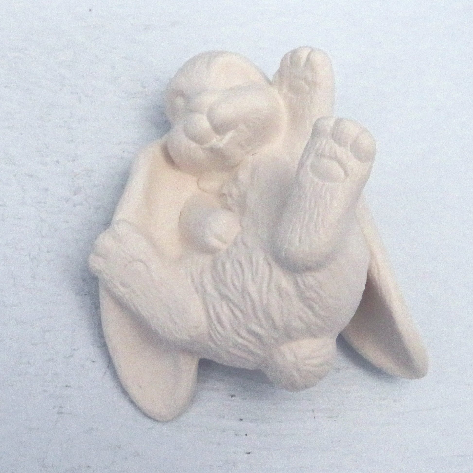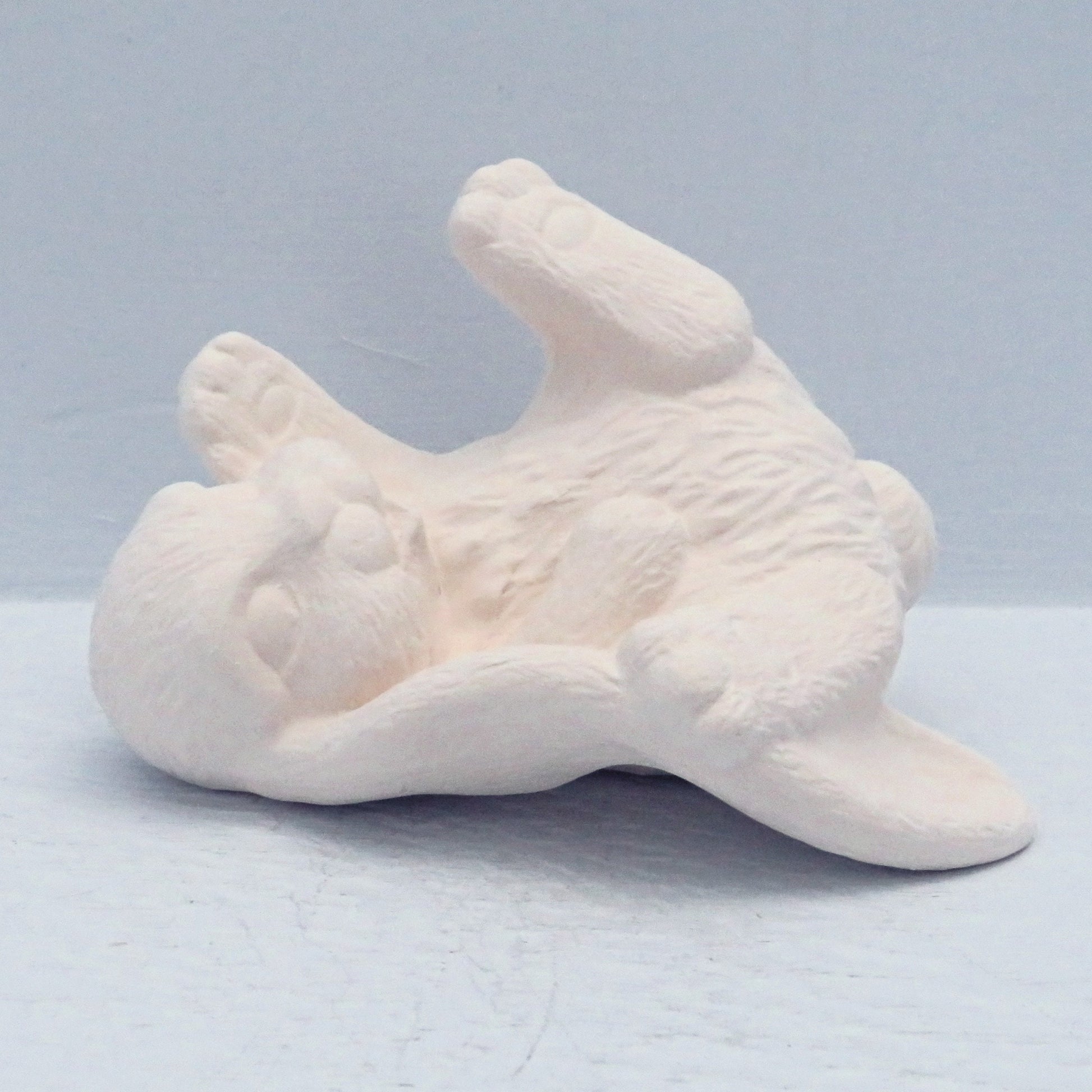 You will love painting this little playful bunny statue. This handmade ceramic bunny figurine is posed lying on his back with his feet up, as if he is rolling around in the grass.