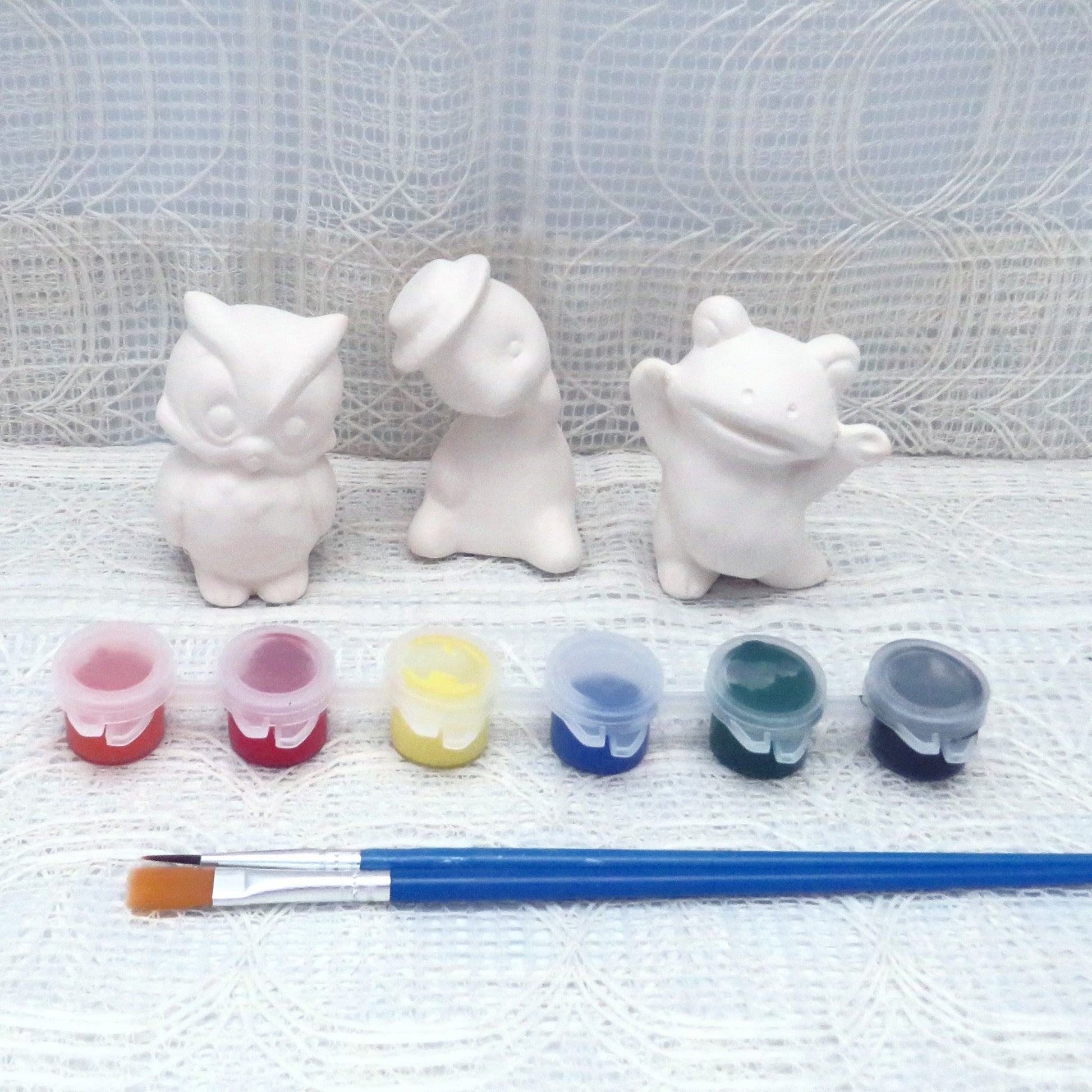 Do you love painting your own decorations? Or maybe you'd prefer to paint a gift for someone? Or possibly you have a friend who loves to paint ceramic bisque. This unpainted frog, turtle, and owl craft set is perfect for someone who wants to express their creative side.